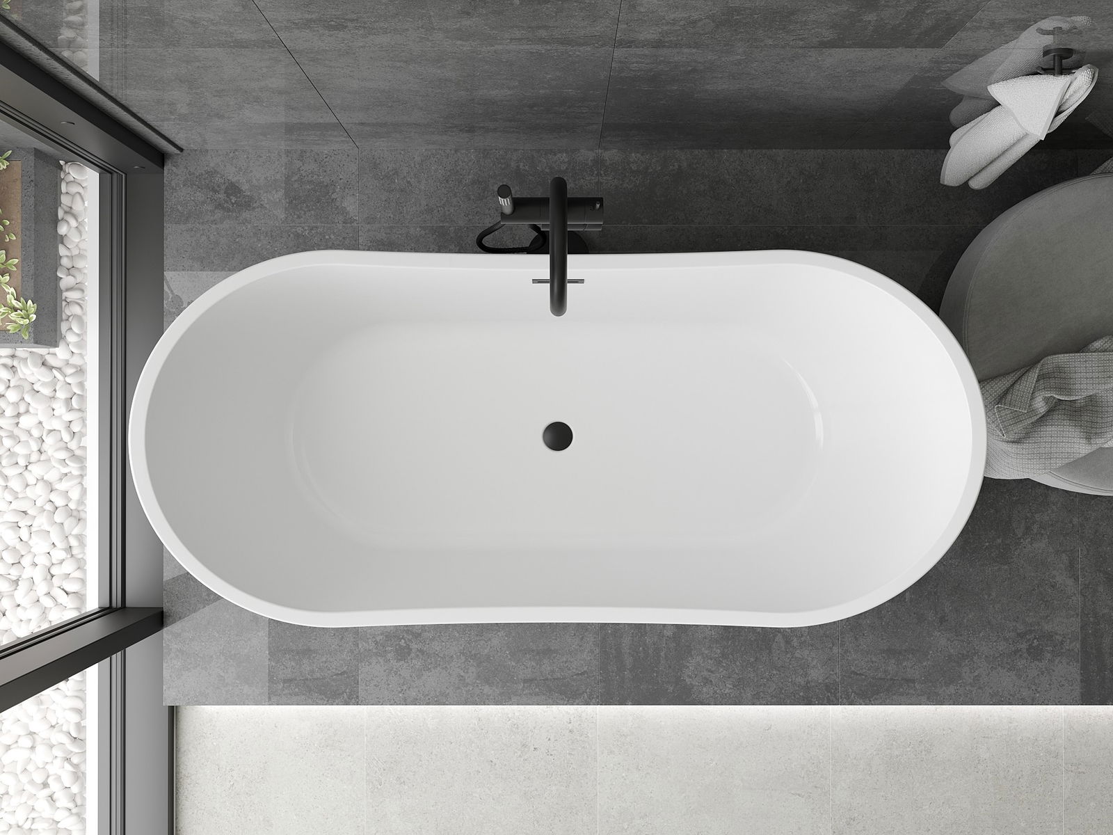 Mexen Montana cadă de sine stătătoare 170 x 80 cm, albă/neagră, preaplin negru - 52011708075-70