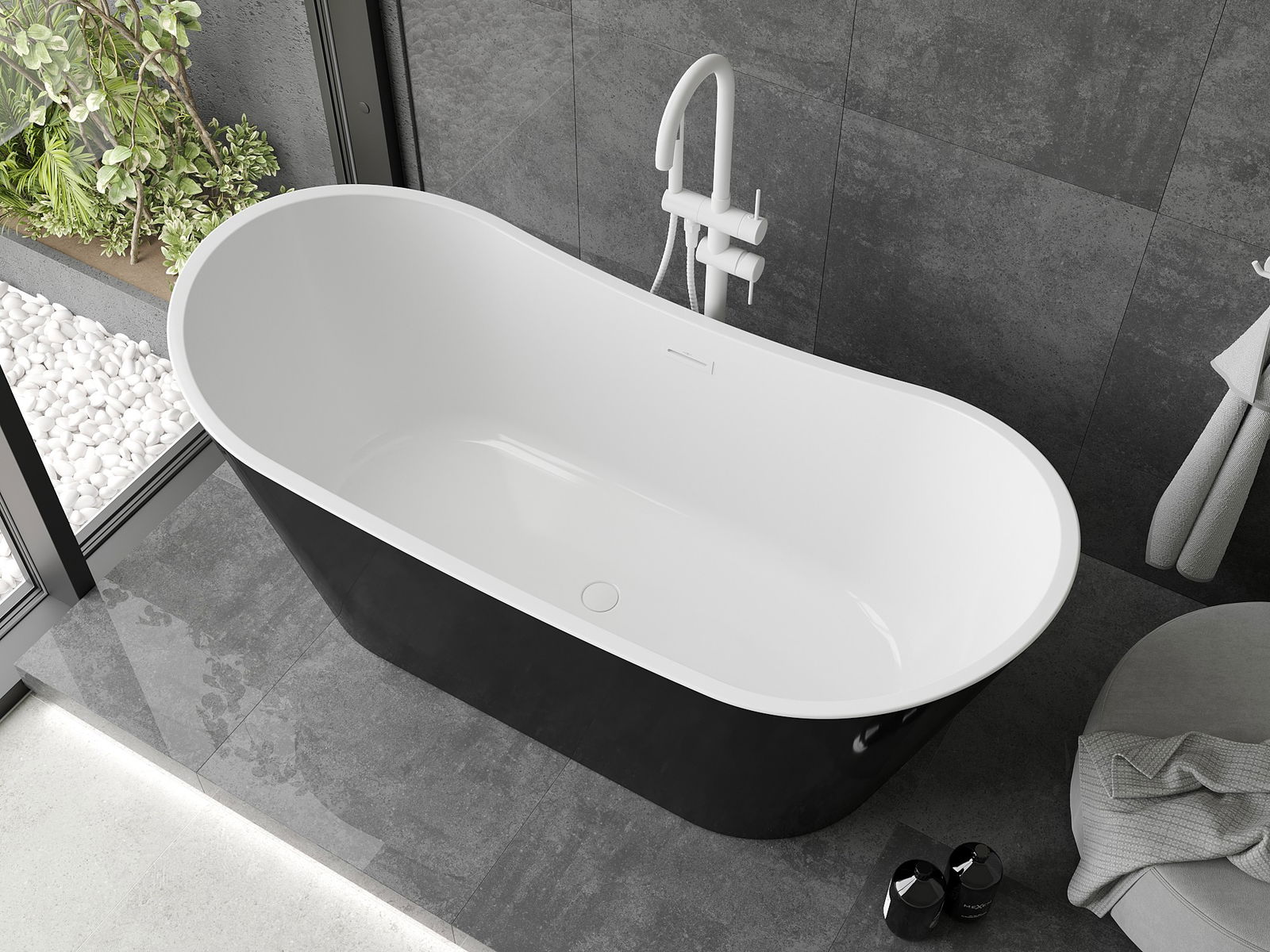 Cadă de sine stătătoare în culori alb-negru din seria Montana îmbină eleganța cu funcționalitatea. Forma sa ovală și suprafața lucioasă adaugă un aspect modern oricărei băi. Cu dimensiunile de 180 x 80 cm și adâncimea de 44,5 cm, oferă confort în timpul băii. Fabricată din acril sanitar, este rezistentă la matuire și razele UV. Cada este echipată cu orificiu de preaplin și sifon, fiind gata de montaj. Înălțimea căzii este de 72 cm, ceea ce facilitează utilizarea.