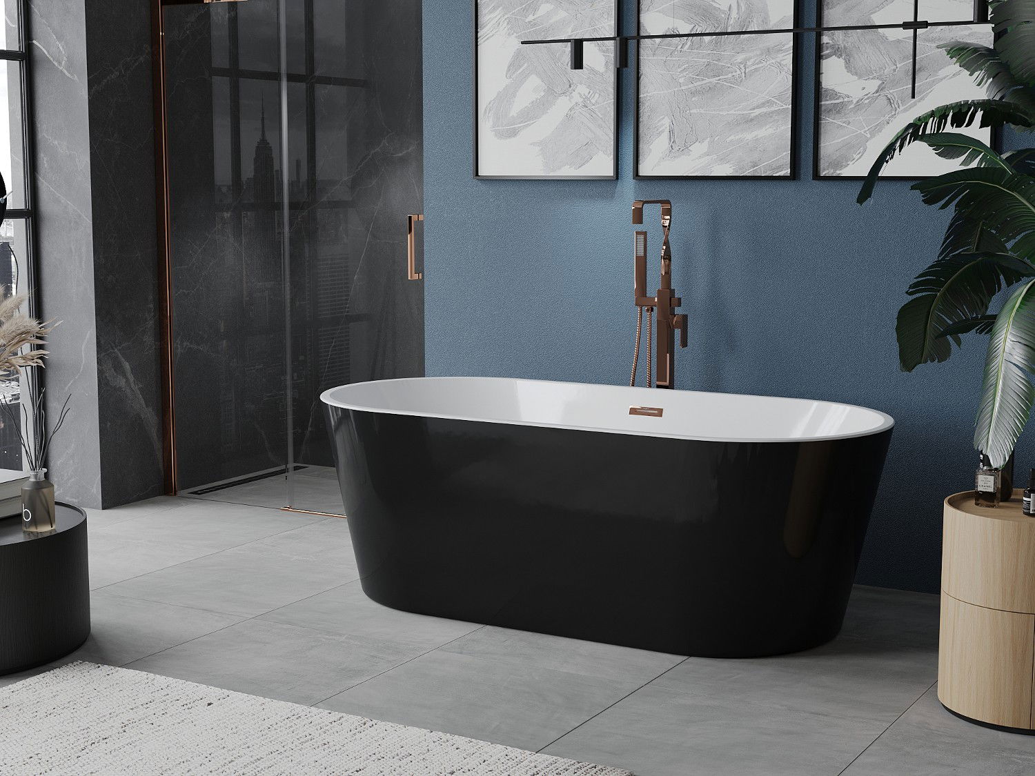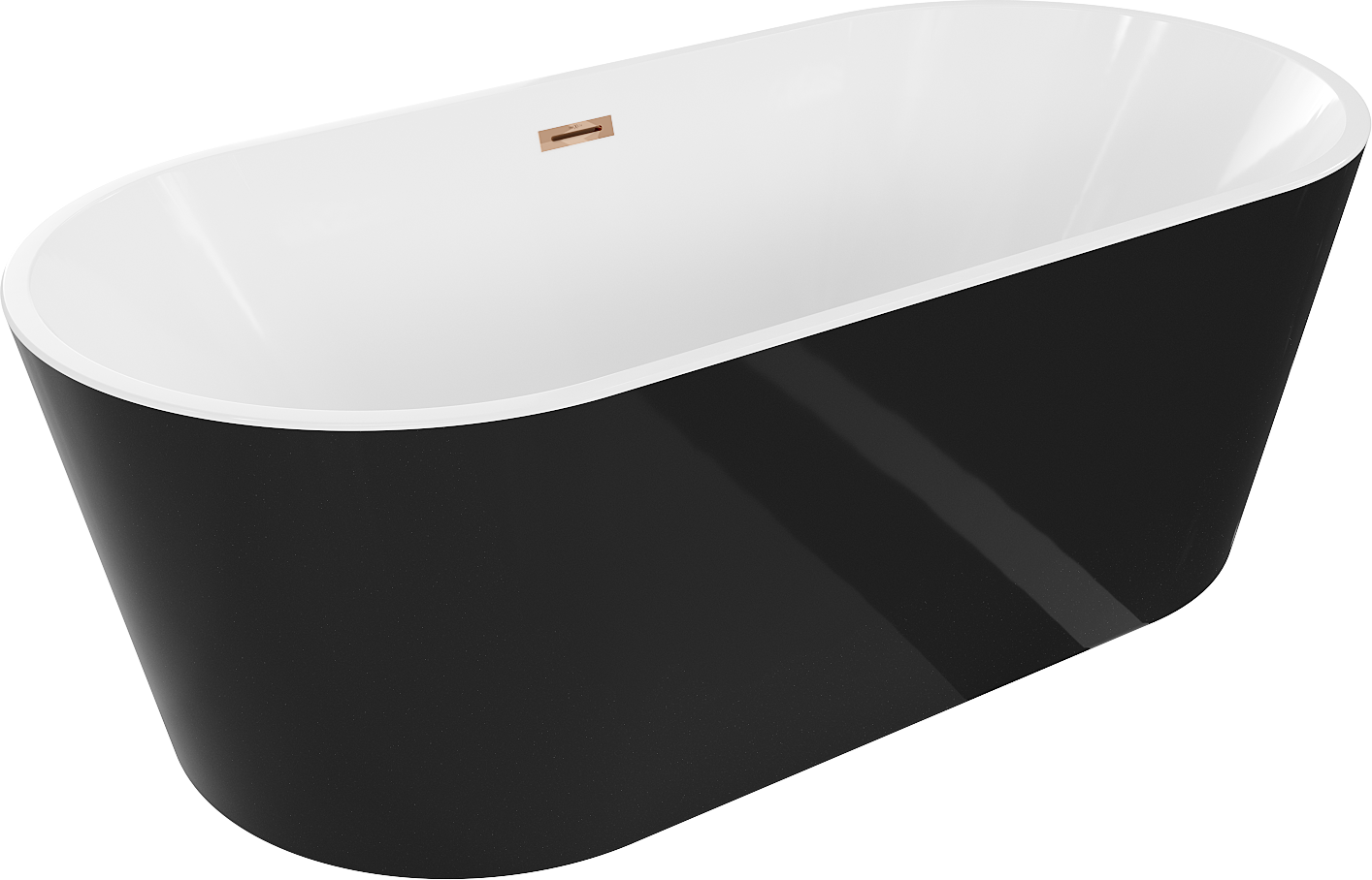 Mexen Luna cadă de baie de sine stătătoare 160 x 75 cm, alb/negru, preaplin aur roz - 52031607575-60