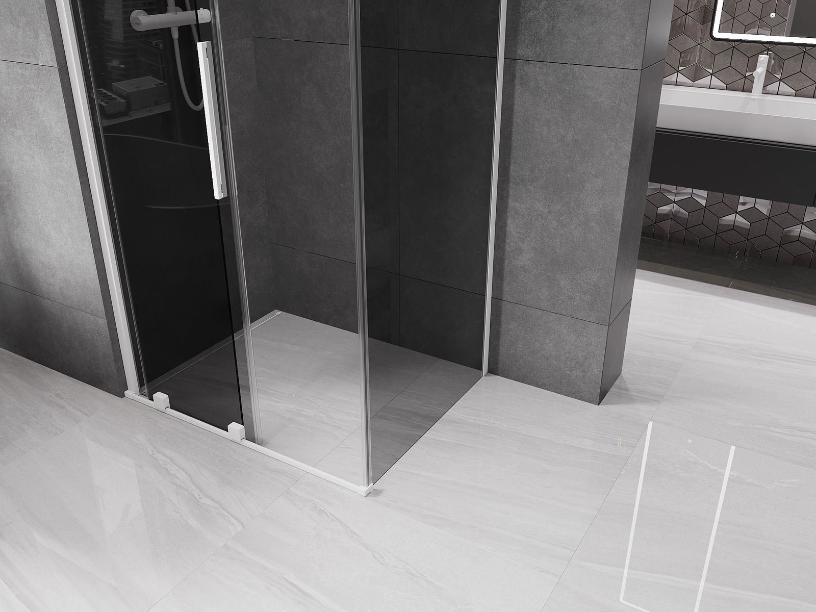 Mânerul practic și confortabil este realizat din oțel inoxidabil. Forma modernă, combinată cu un finisaj asortat cu culoarea profilelor, conferă ansamblului un aspect modern și elegant, subliniind estetica fiecărei băi.