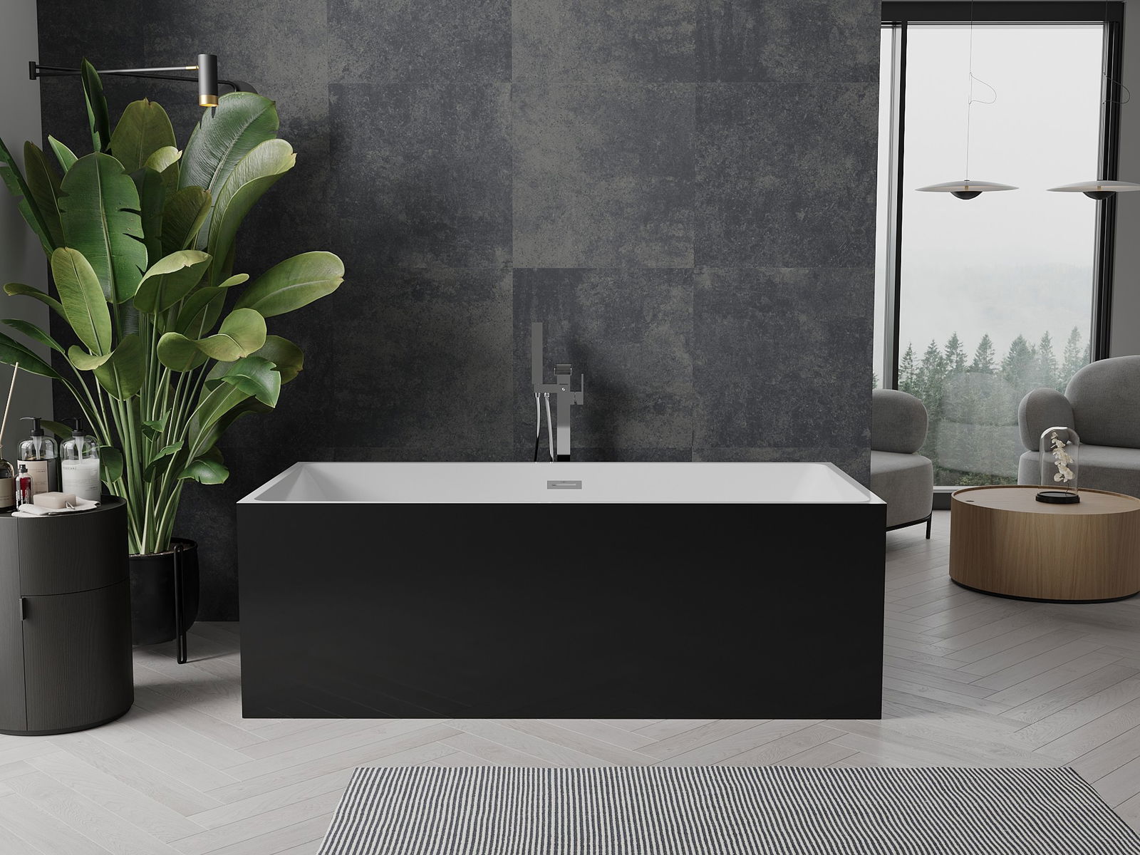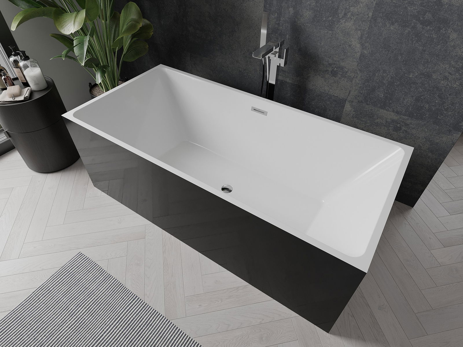 Mexen Nita cadă freestanding 170 x 80 cm, albă/neagră, preaplin cromat - 52091708075-01