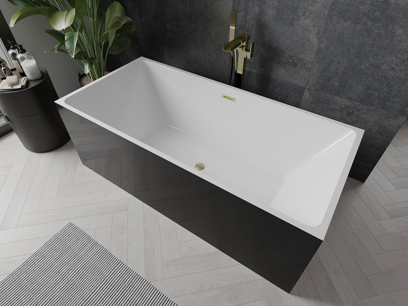 Mexen Nita cadă de sine stătătoare 170 x 80 cm, albă/neagră, preaplin auriu periat - 52091708075-55