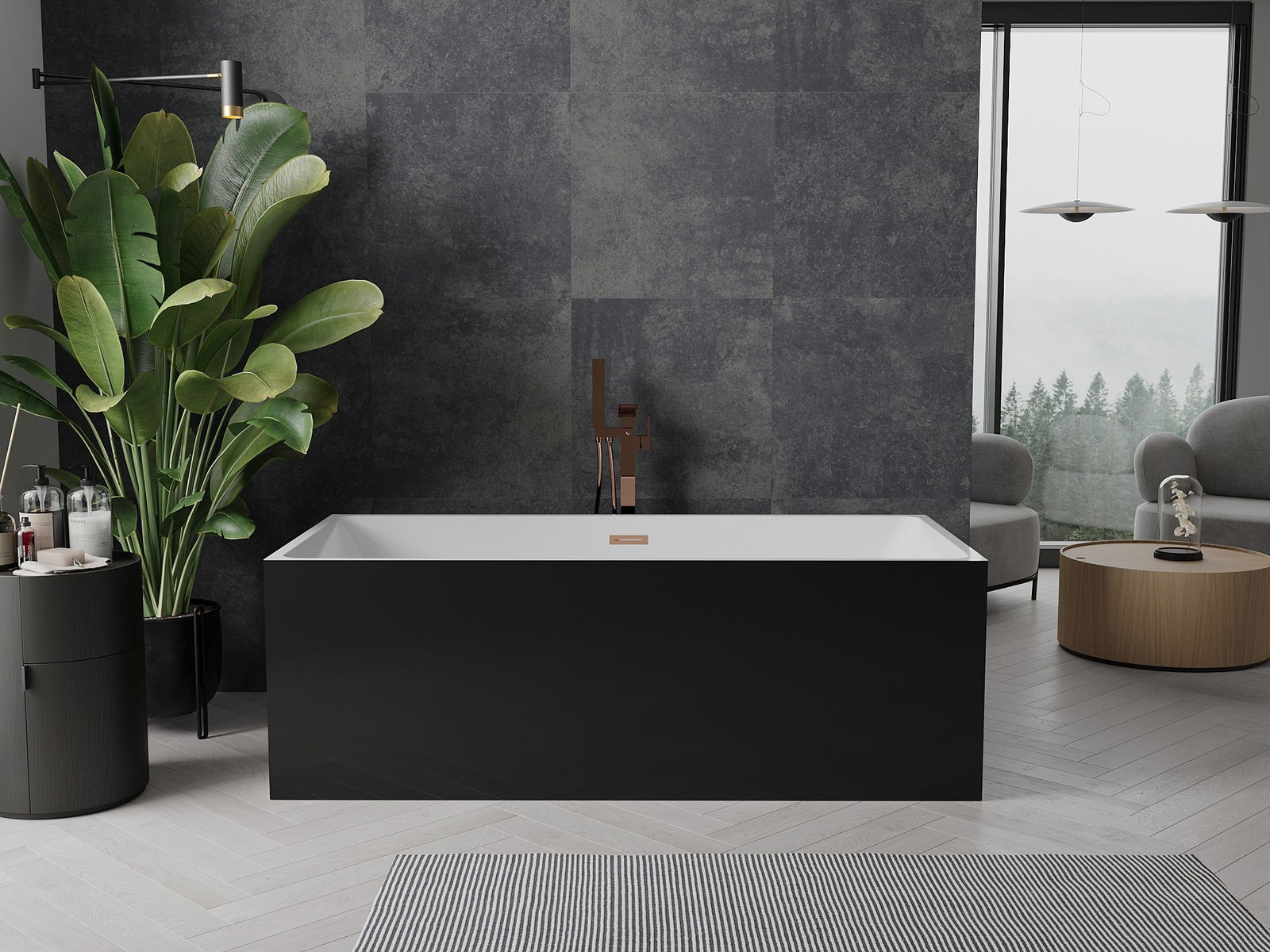 Mexen Nita cadă freestanding 170 x 80 cm, albă/neagră, preaplin aur roz - 52091708075-60