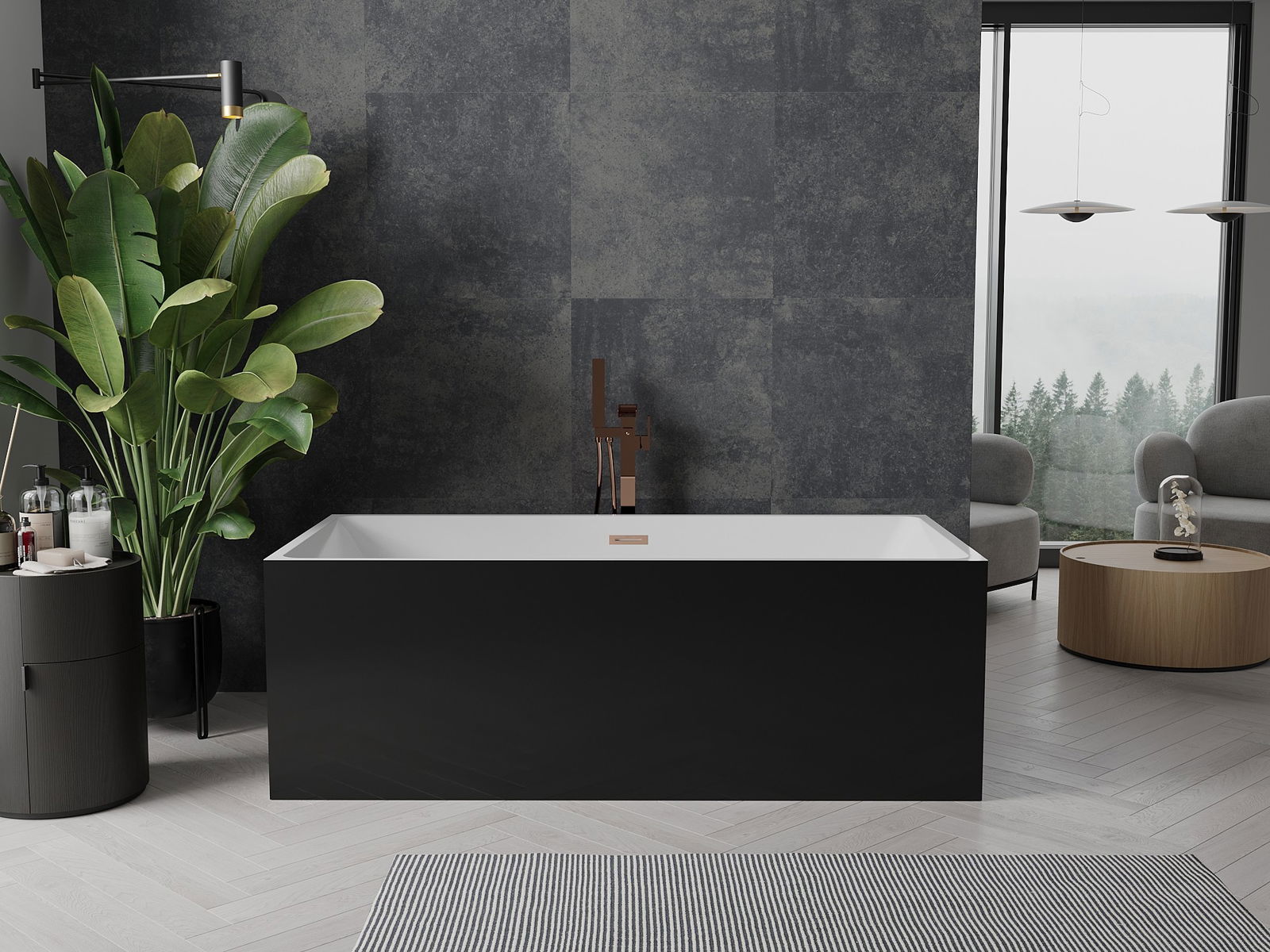 Mexen Nita cadă de sine stătătoare 170 x 80 cm, albă/neagră, preaplin cupru periat - 52091708075-65