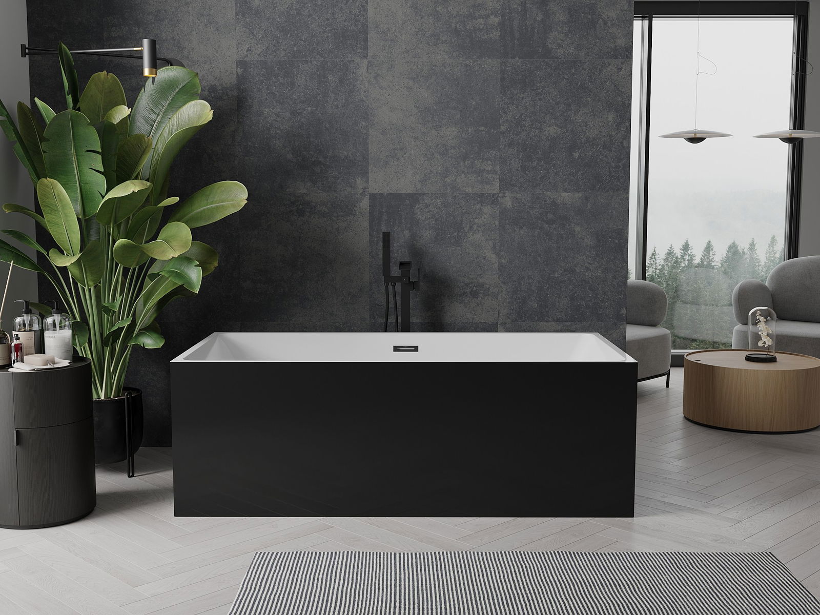 Mexen Nita cadă freestanding 170 x 80 cm, albă/neagră, deversor negru - 52091708075-70