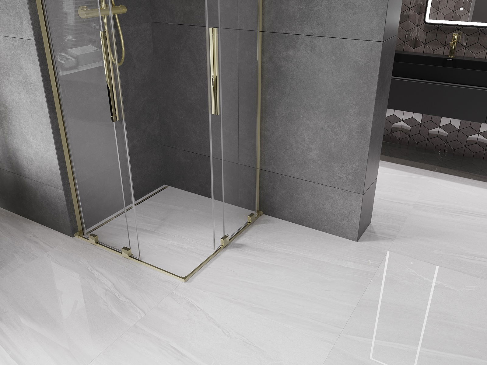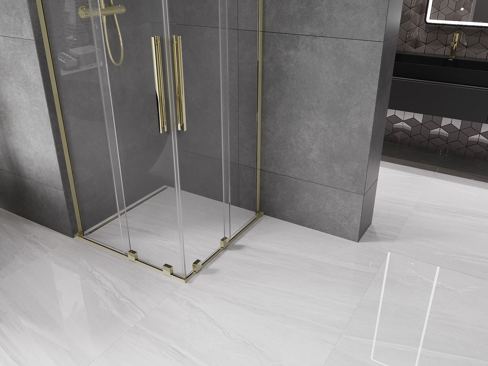 Mexen Velar L Duo cabină de duș glisantă 80 x 80 cm, transparentă, auriu - 871-080-080-02-03-50