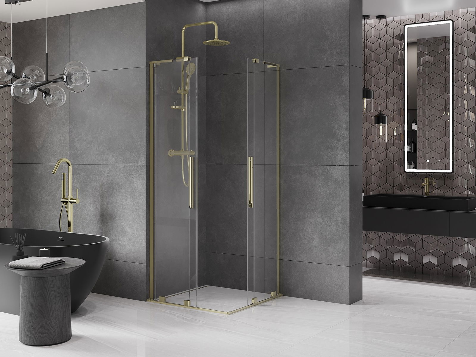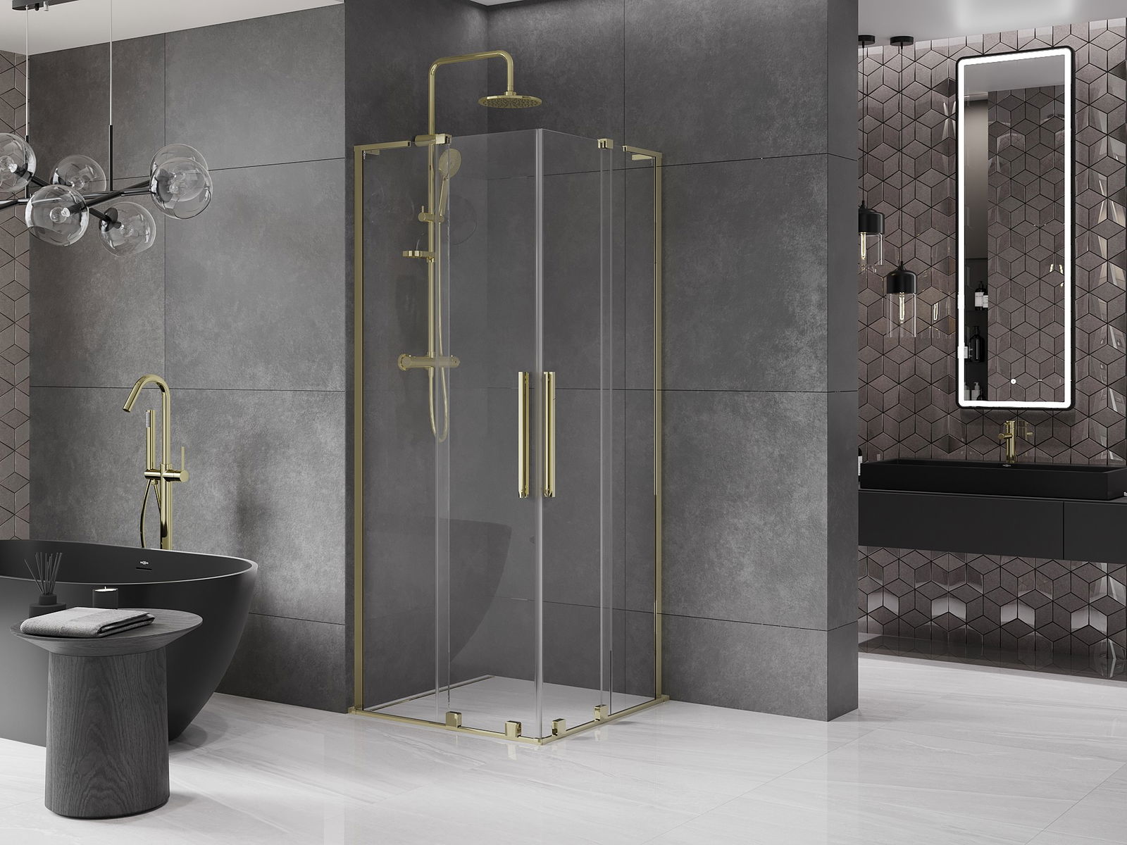 Mânerul practic și confortabil este realizat din oțel inoxidabil. Forma modernă, combinată cu un finisaj asortat cu culoarea profilelor, conferă ansamblului un aspect modern și elegant, subliniind estetica fiecărei băi.