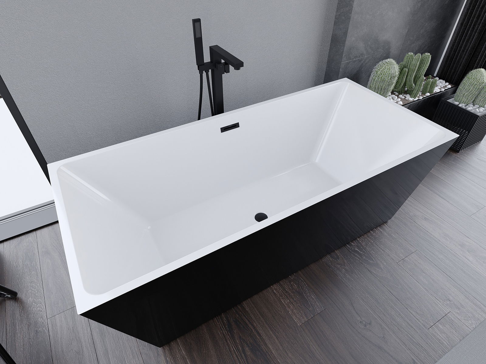 Mexen Lita cadă independentă 170 x 75 cm, albă/neagră, preaplin negru - 52121707575-70