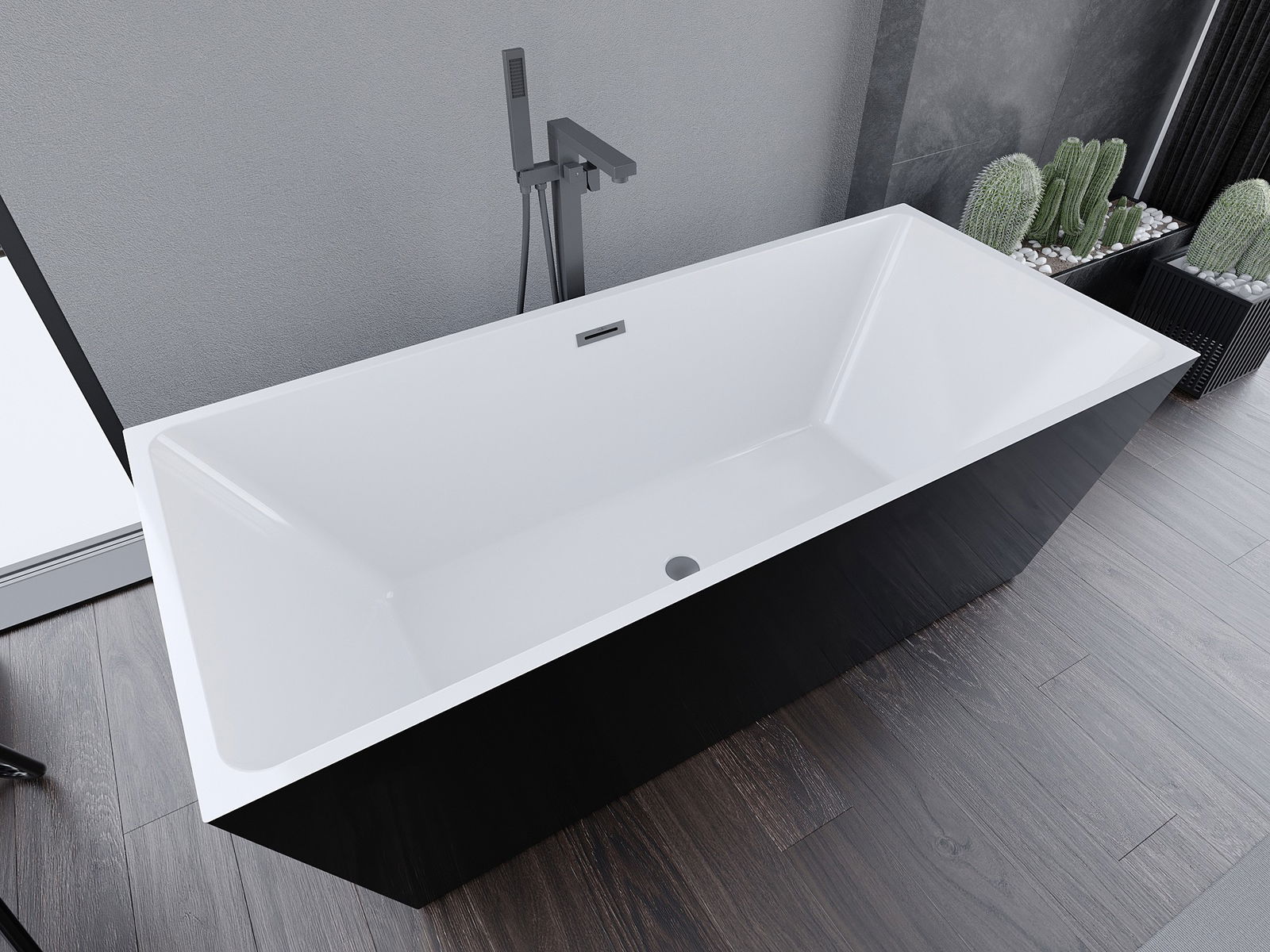 Mexen Lita cadă freestanding 170 x 75 cm, albă/neagră, preaplin gun metal - 52121707575-95