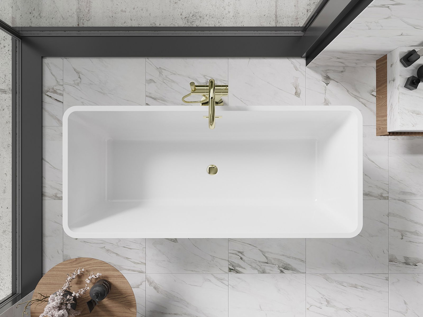 Mexen Tonia cadă de baie independentă 170 x 75 cm, albă, preaplin auriu - 52171707500-50