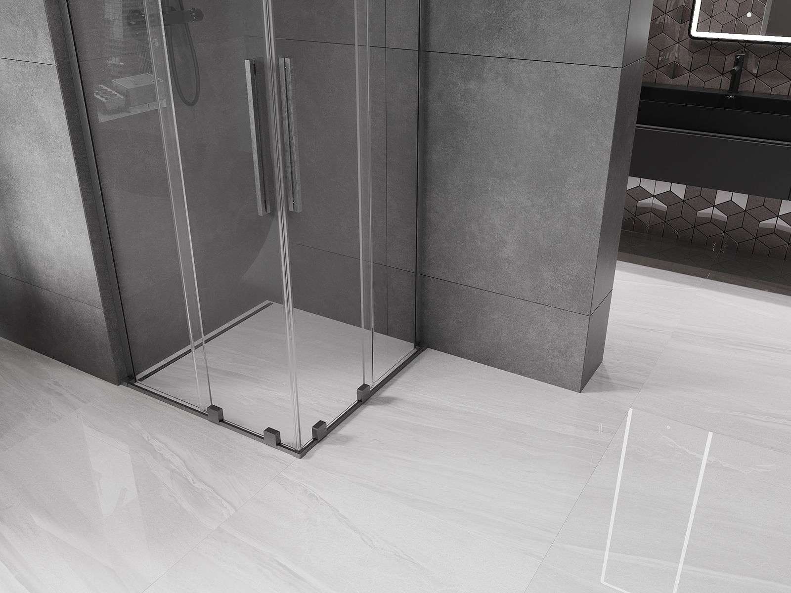 Mexen Velar L Duo cabină de duș culisantă 90 x 90 cm, transparentă, gri armat - 871-090-090-02-03-66