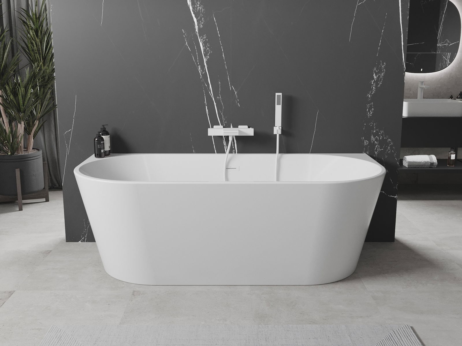 Mexen Oval cadă freestanding lipită la perete 150 x 75 cm, albă, preaplin alb - 52671507500-20