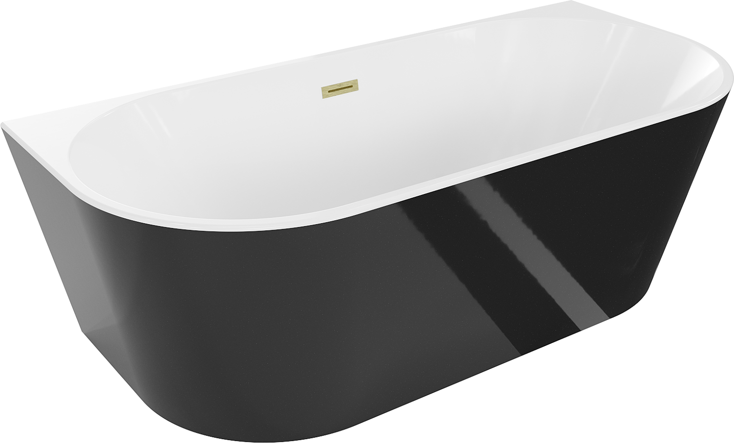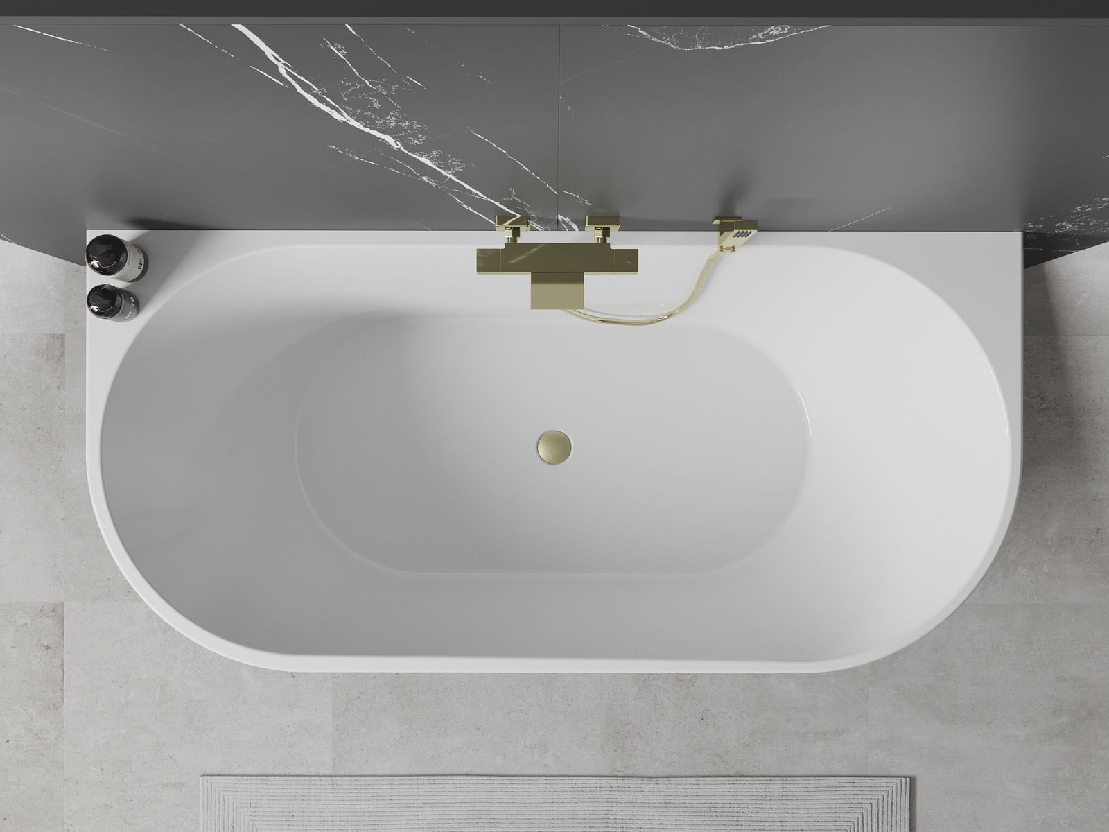 Mexen Oval cadă freestanding de perete 150 x 75 cm, alb/negru, preaplin auriu periat - 52671507575-55
