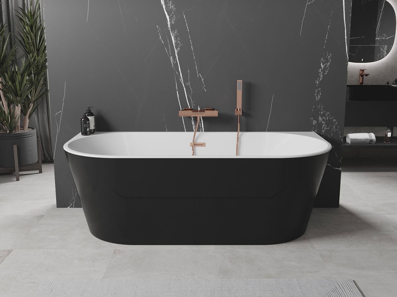 Mexen Oval cadă freestanding de perete 150 x 75 cm, albă/neagră, preaplin cupru periat - 52671507575-65