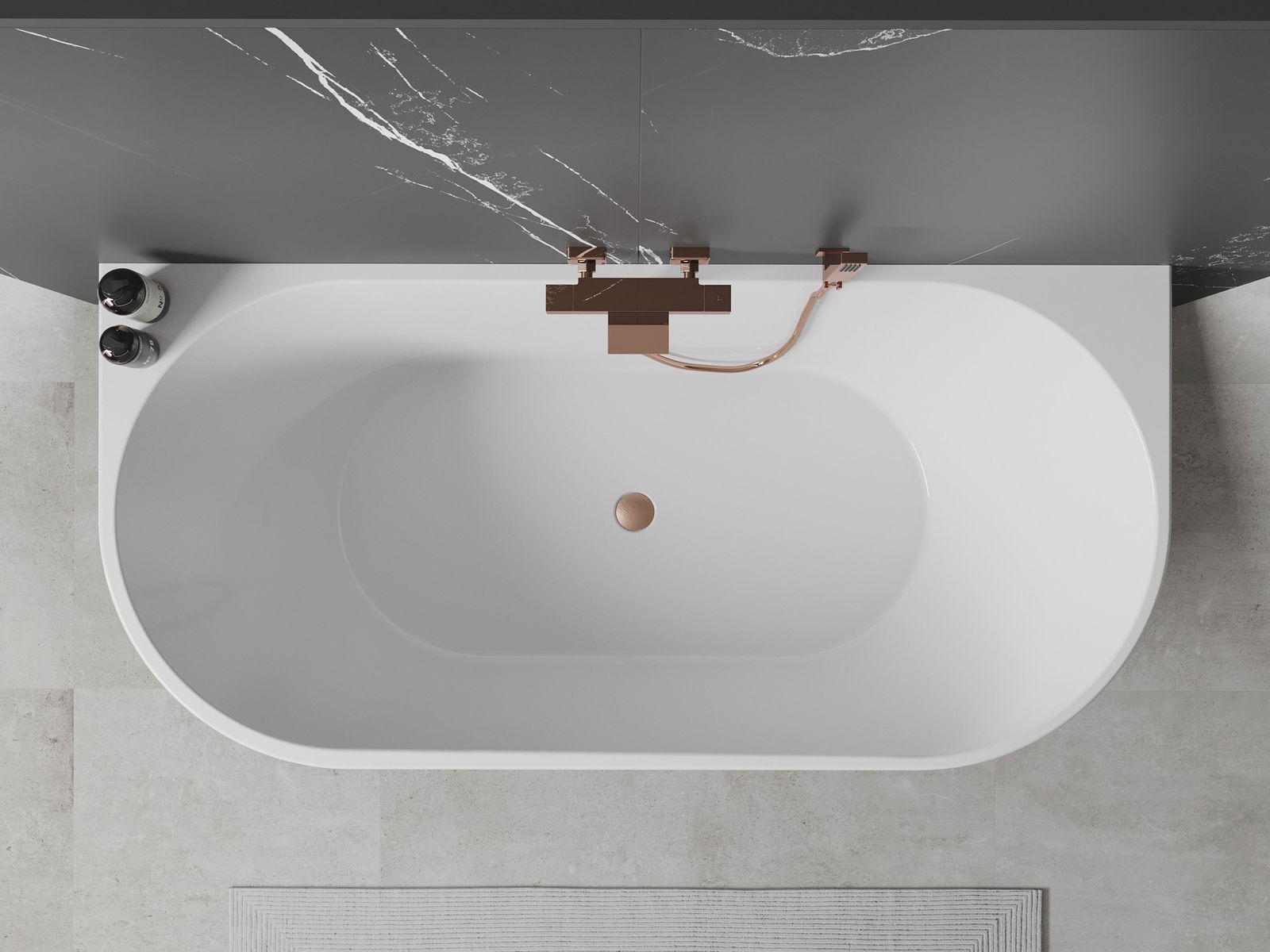 Mexen Oval cadă de baie independentă, montată pe perete, 170 x 80 cm, albă, preaplin cupru periat - 52671708000-65