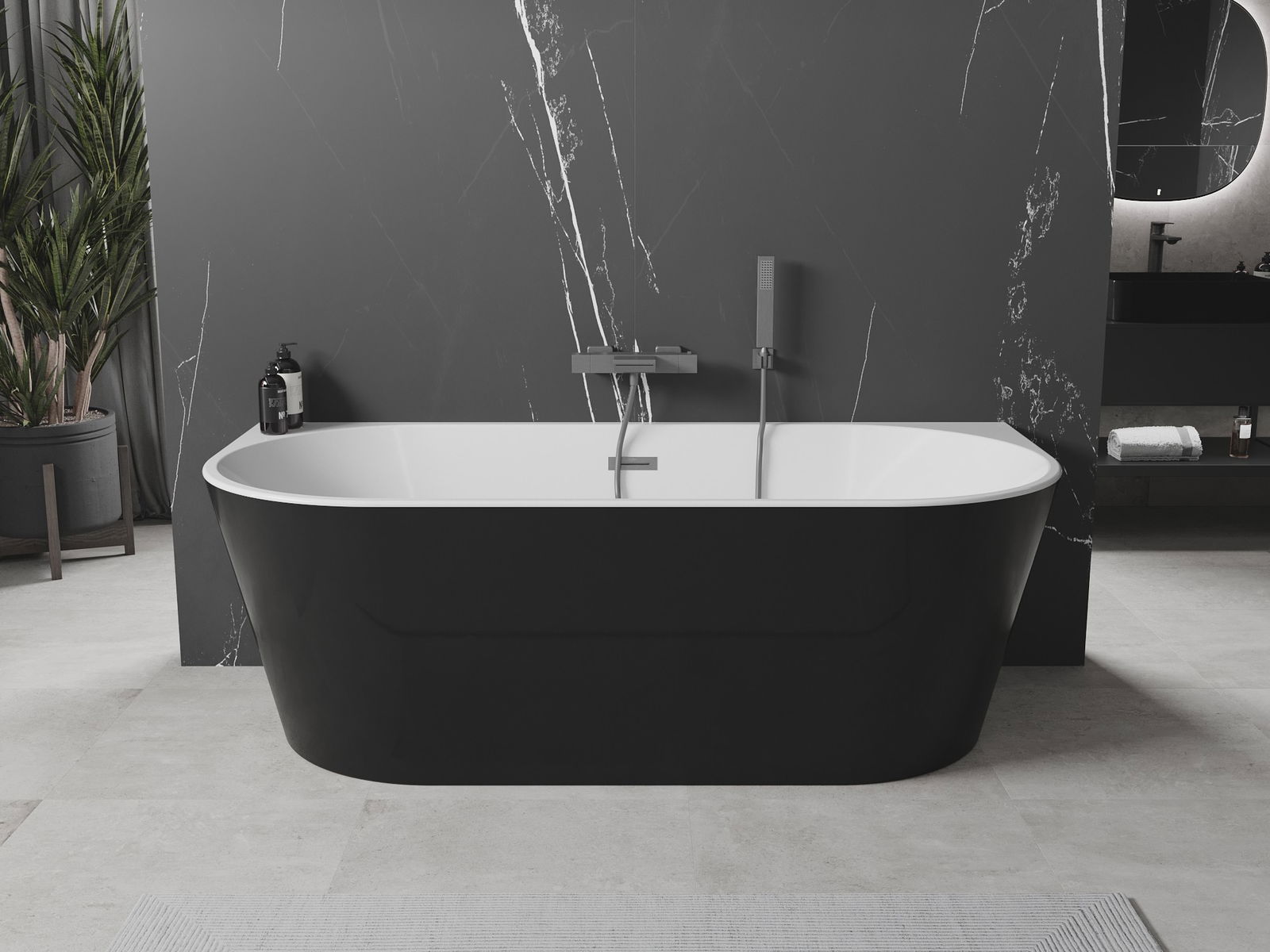 Mexen Oval cadă independentă de perete 170 x 80 cm, alb/negru, preaplin gri pistol periat - 52671708075-66