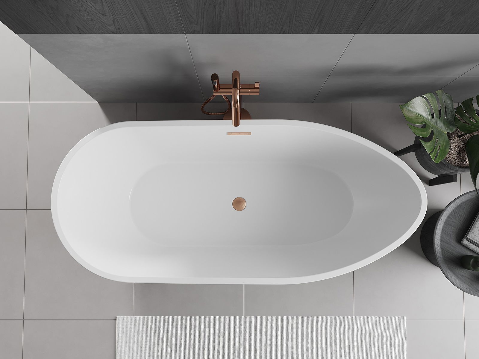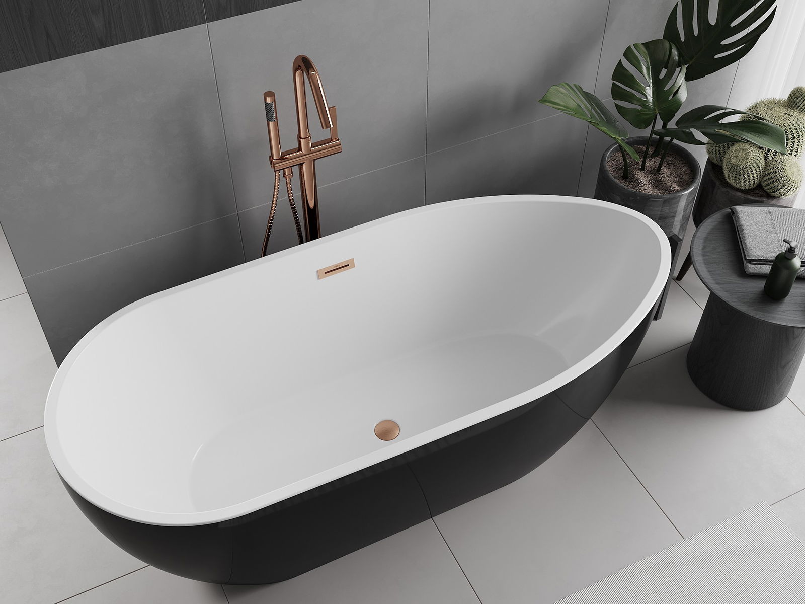 Mexen Eos este o cadă de baie elegantă, independentă, cu dimensiuni de 170 x 75 cm, realizată din acril sanitar, disponibilă în culori stilate alb și negru. Datorită formei sale ovale și suprafeței lucioase, cada se potrivește perfect în băile moderne. Are orificiu de preaplin și scurgere centrală pentru confortul utilizării. În plus, finisajul de cupru periat și rezistența la matuire și radiații UV fac ca produsul să fie atât estetic, cât și durabil.