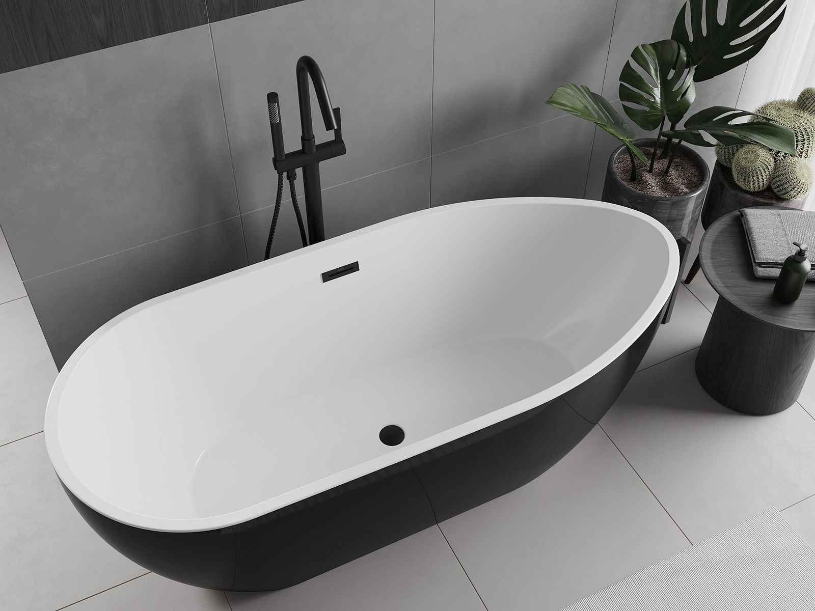 Cadă freestanding 170 x 75 cm în culoarea alb/negru este alegerea ideală pentru o baie modernă. Fabricată din acril sanitar, asigură durabilitate și rezistență la acțiunea razelor UV și matuial. Se caracterizează printr-o formă ovală elegantă și o suprafață lucioasă. Dispune de orificiu preaplin, iar în set este inclus sifonul și dopul click-clack. Datorită combinației unice de alb și negru, cada aduce stil și confort în orice interior.