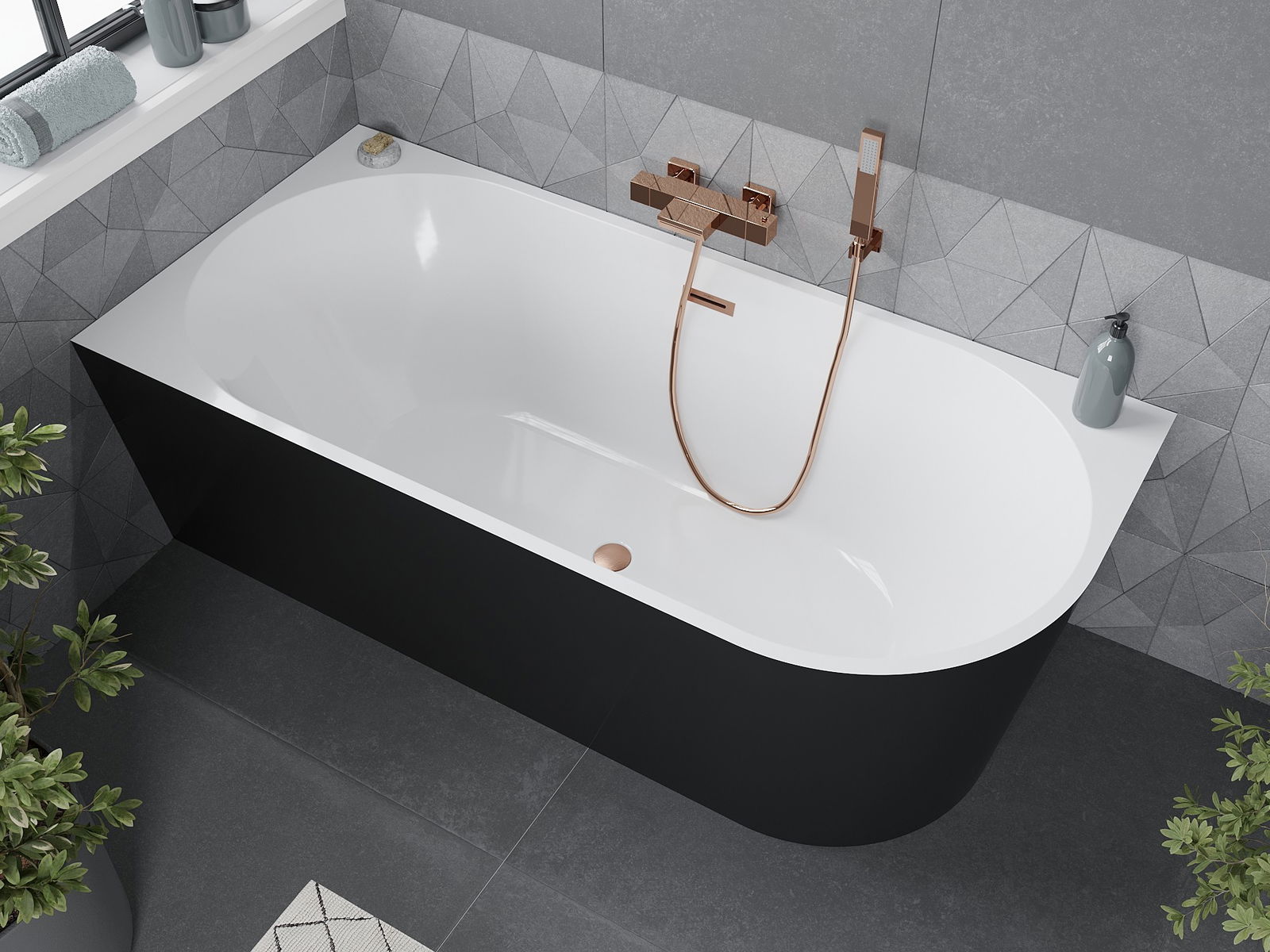 Mexen Mia cadă de baie freestanding colţar stânga 180 x 80 cm, alb/negru, preaplin cupru periat - 52691808075L-65