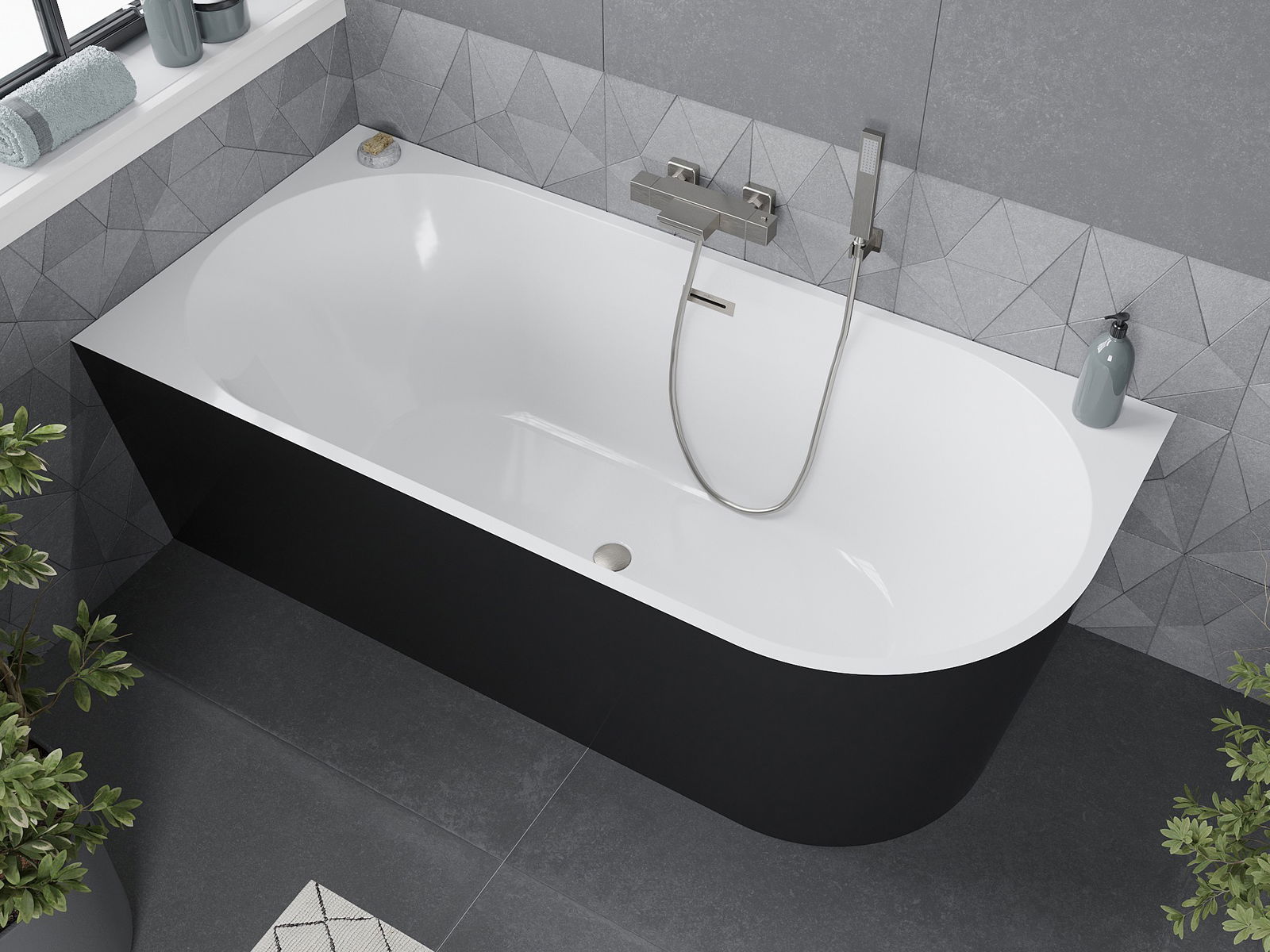 Mexen Mia cadă de baie independentă de colț stânga 180 x 80 cm, alb/negru, preaplin nichel periat - 52691808075L-97