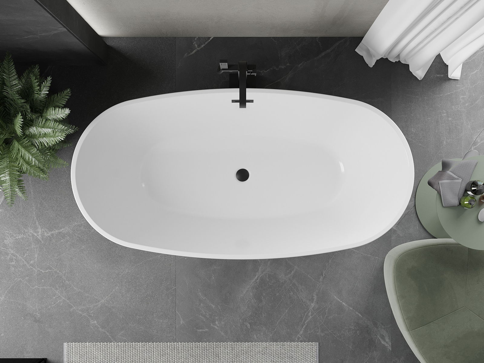 Mexen Eris este o cadă de baie freestanding de dimensiuni 170 x 80 cm, ideală pentru băi moderne. Fabricată din acril sanitar, se caracterizează prin rezistență la matuire și radiații UV, asigurând un luciu de lungă durată. Forma ovală și finisajul în culorile alb și negru adaugă eleganță. Cada este echipată cu orificiu de preaplin și sifon cu dop click-clack. Datorită montajului simplu și scurgerii centrale, utilizarea este convenabilă și confortabilă.