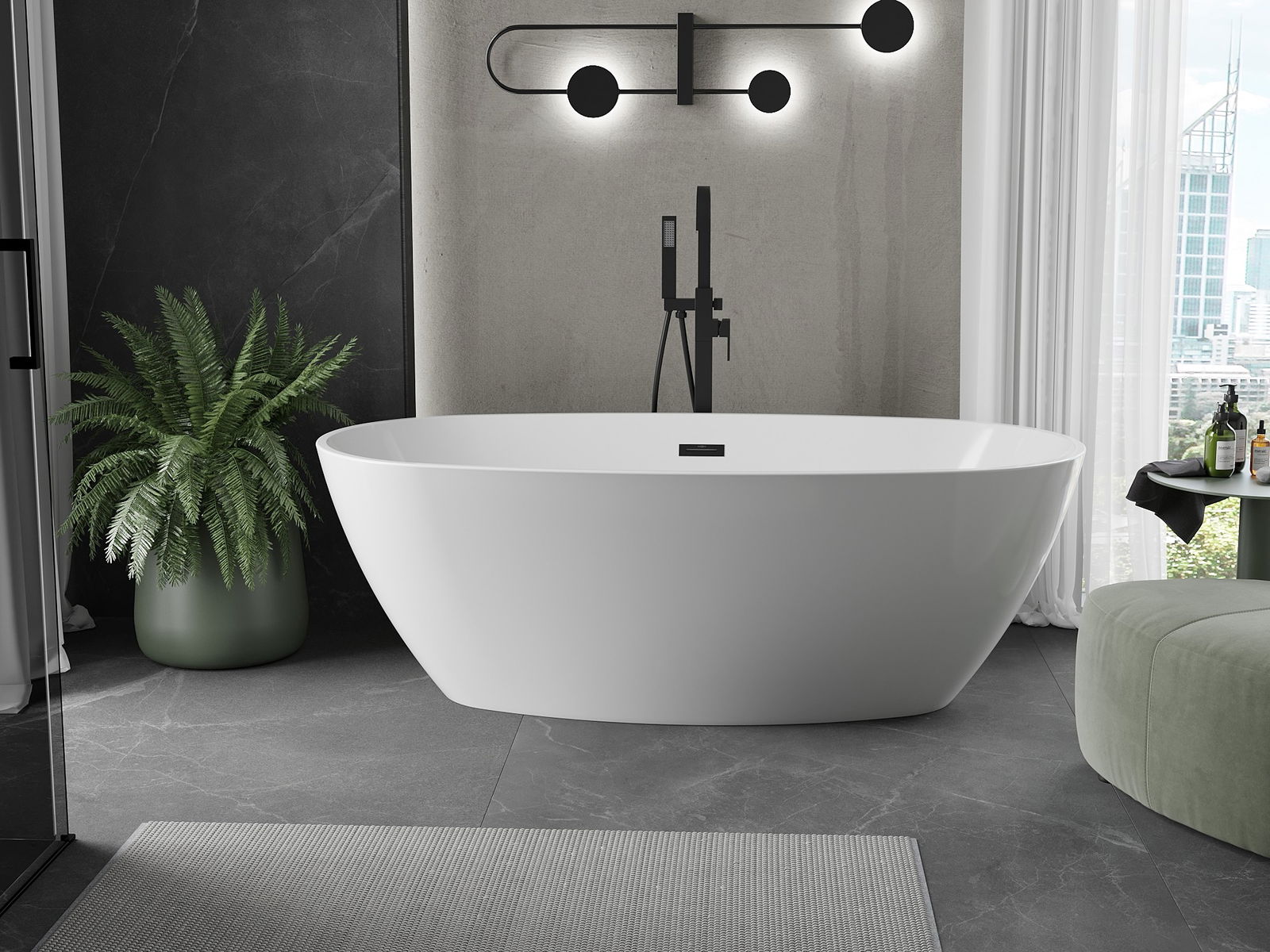 Mexen Eris cadă freestanding 180 x 80 cm, albă, preaplin negru - 53441808000-70