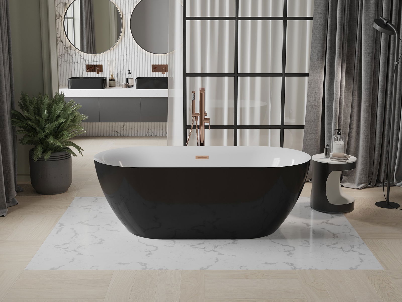 Mexen Roxy cadă freestanding 170 x 80 cm, albă/neagră, preaplin auriu roz - 51201708075-60