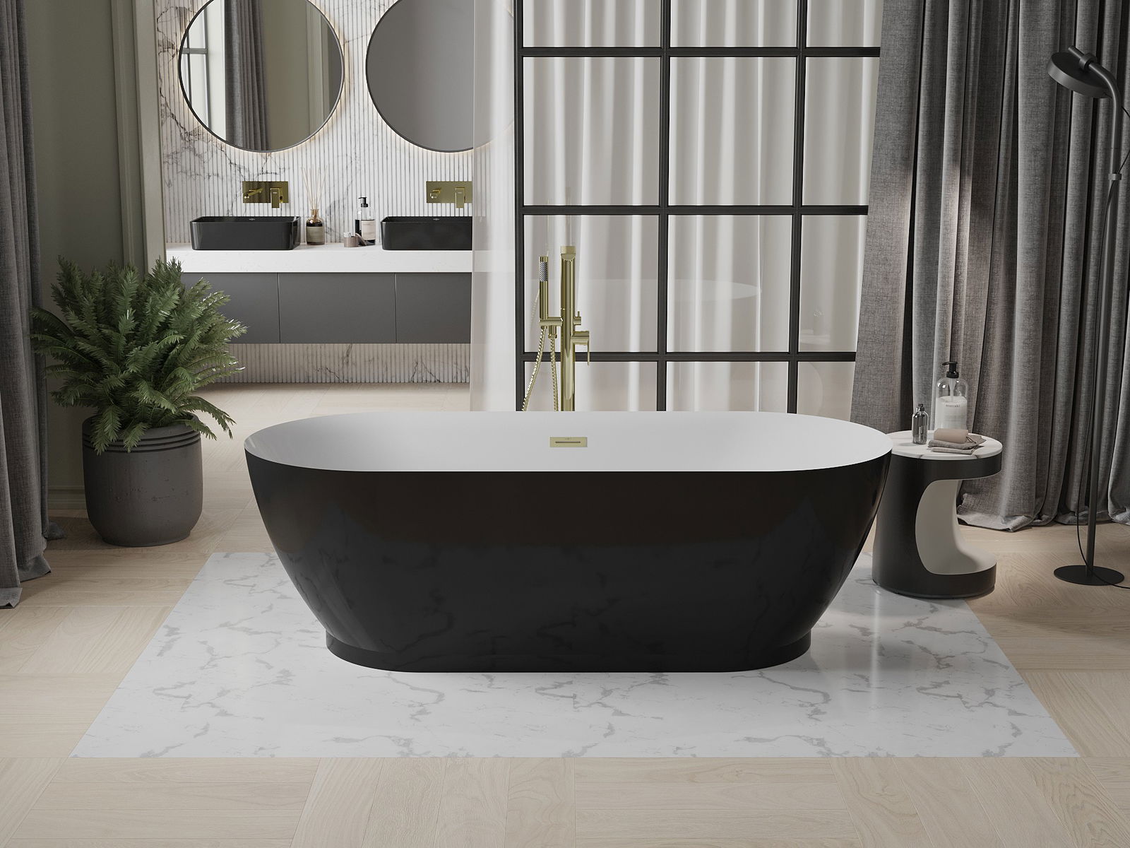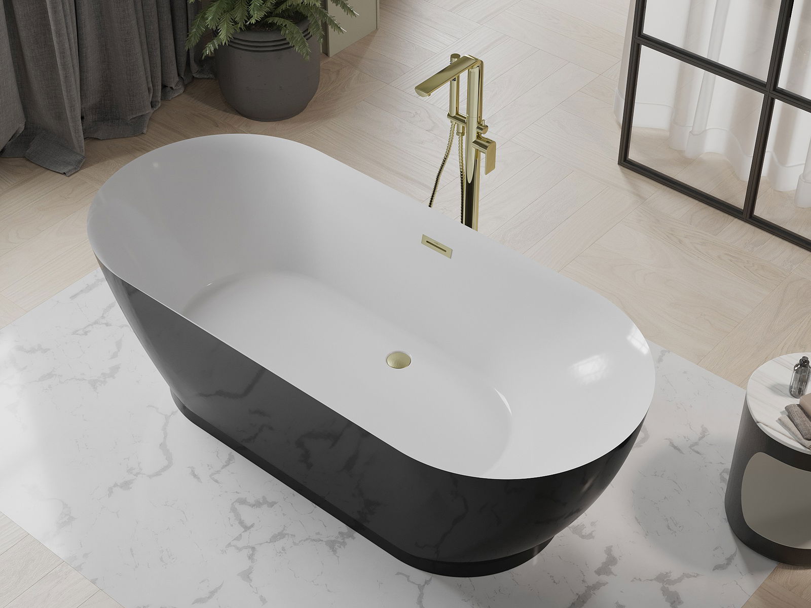 Mexen Roxy cadă de baie independentă 180 x 85 cm, alb/negru, preaplin auriu periat - 51201808575-55