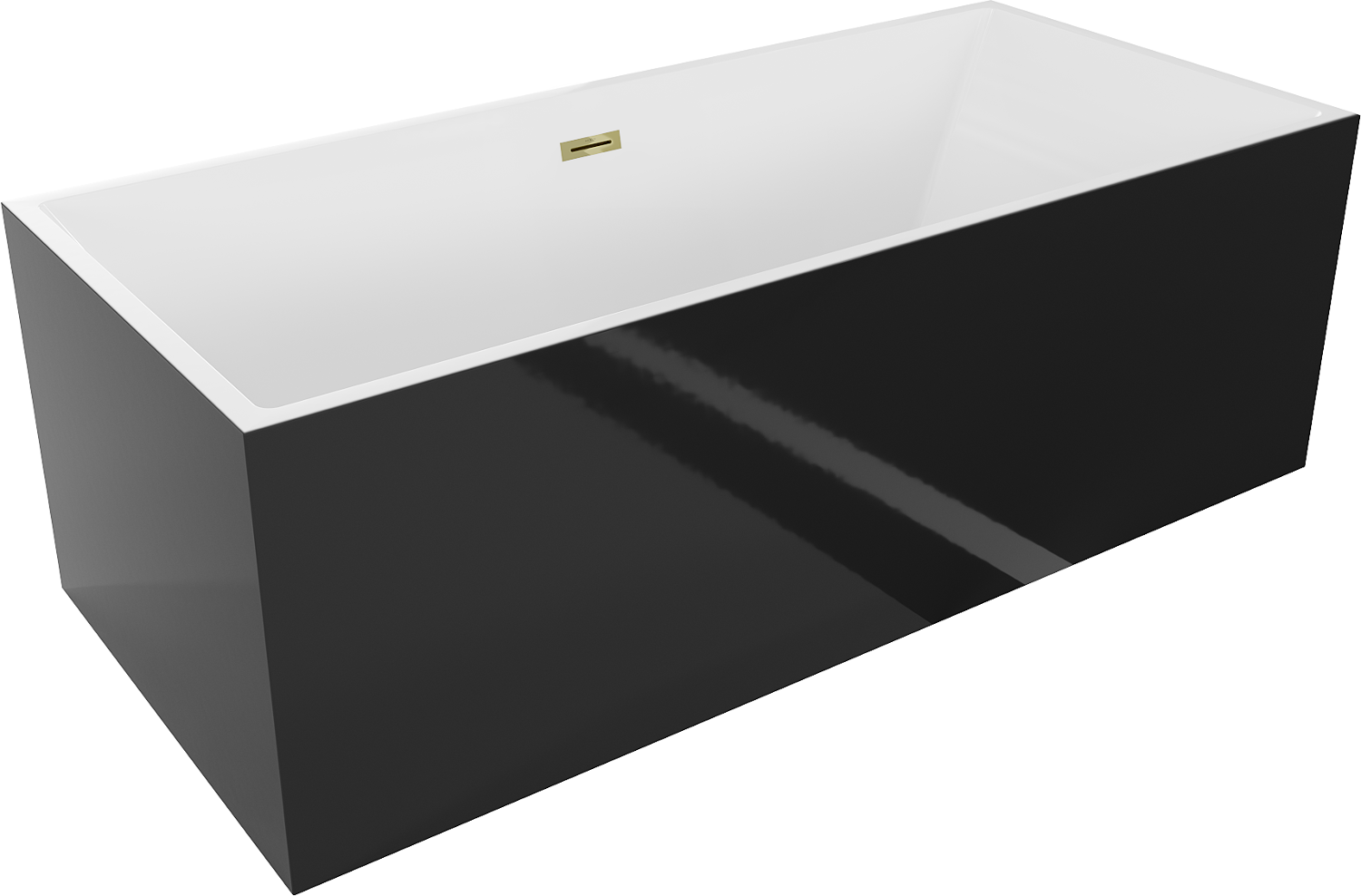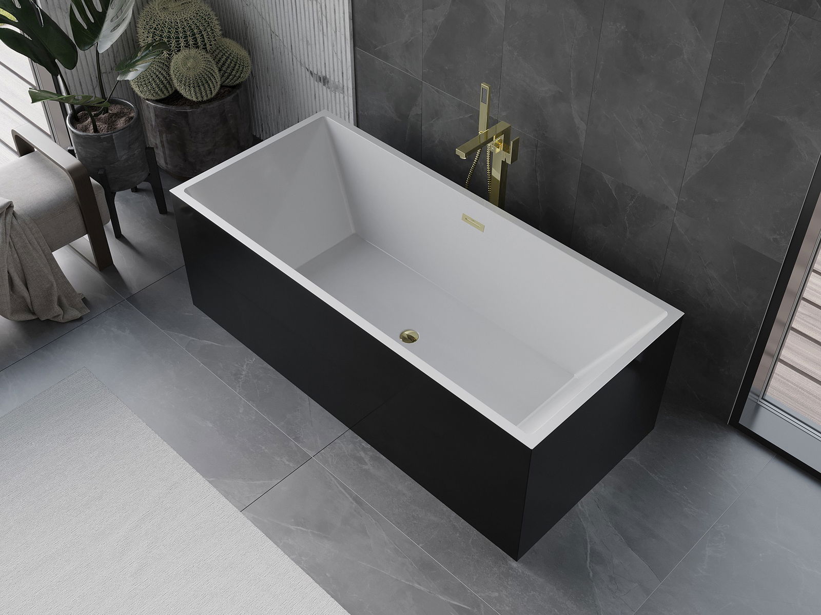 Mexen Vigo cadă de baie freestanding 178,5 x 80 cm, alb/negru, preaplin auriu - 51251788075-50