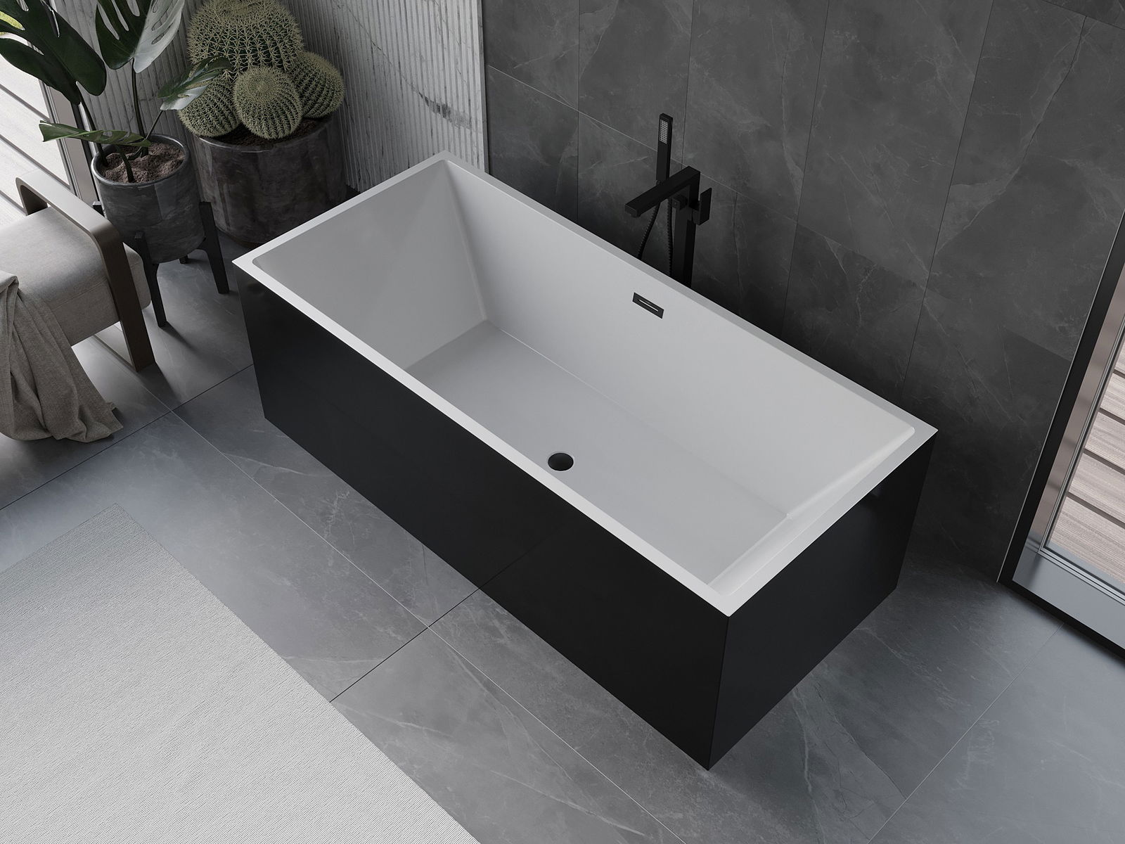 Mexen Vigo cadă de sine stătătoare 178,5 x 80 cm, albă/neagră, preaplin negru - 51251788075-70