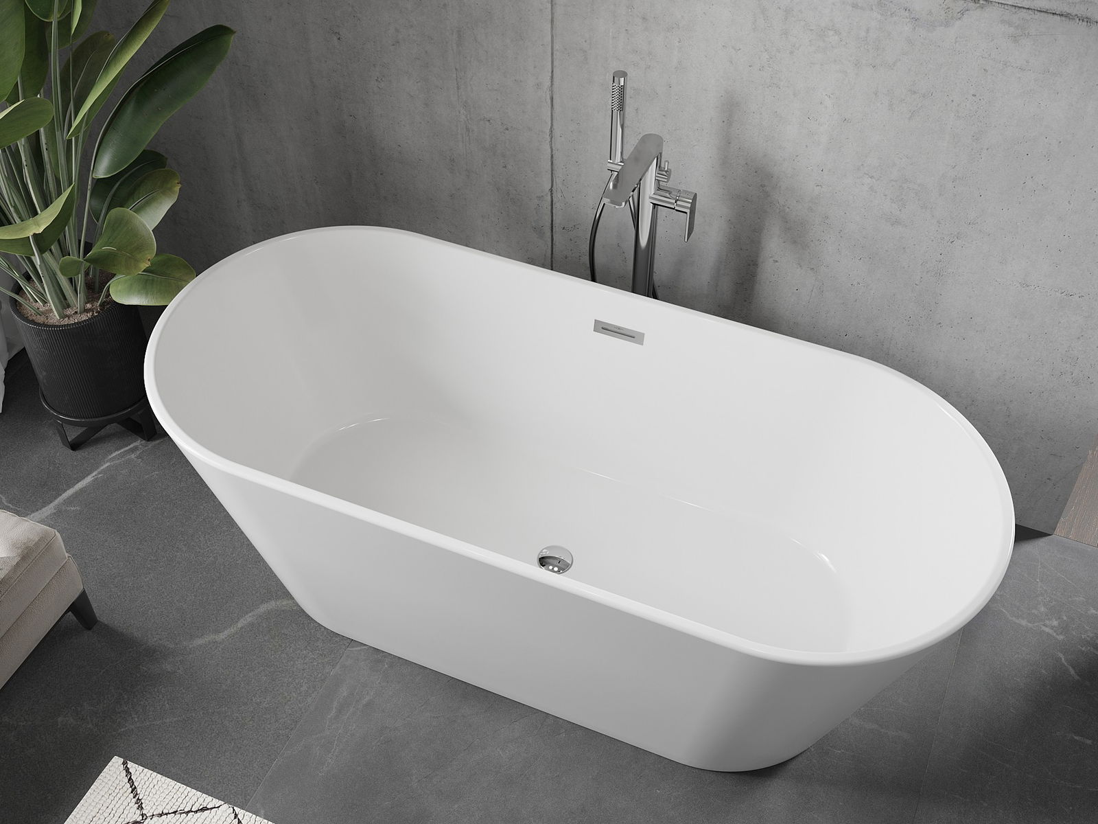 Cadă de baie freestanding oferă un design elegant într-o formă ovală, potrivindu-se perfect în orice baie. Dimensiunile de 150 x 75 cm și înălțimea de 58 cm asigură un confort sporit. Fabricată din acril sanitar, se caracterizează prin rezistență la matuire și radiații UV. Finisajul cromat și orificiul preaplin sporesc funcționalitatea produsului, iar în set se găsește sifonul și dopul de tip clic clac. Datorită acestor caracteristici, cada îmbină estetica cu practicitatea.