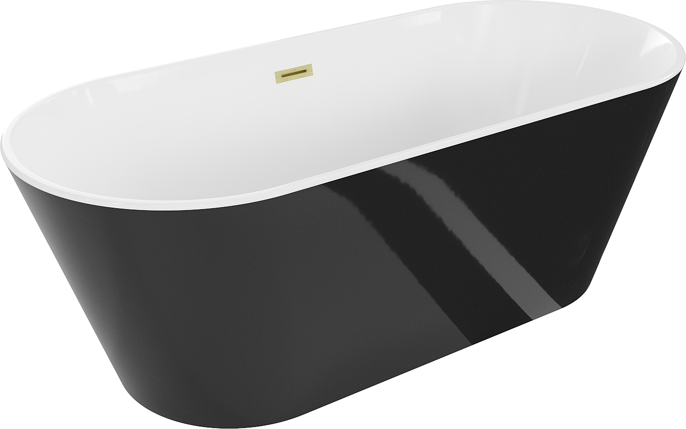 Mexen Flavia cadă freestanding 150 x 75 cm, albă/neagră, preaplin auriu periat - 54031507575-55