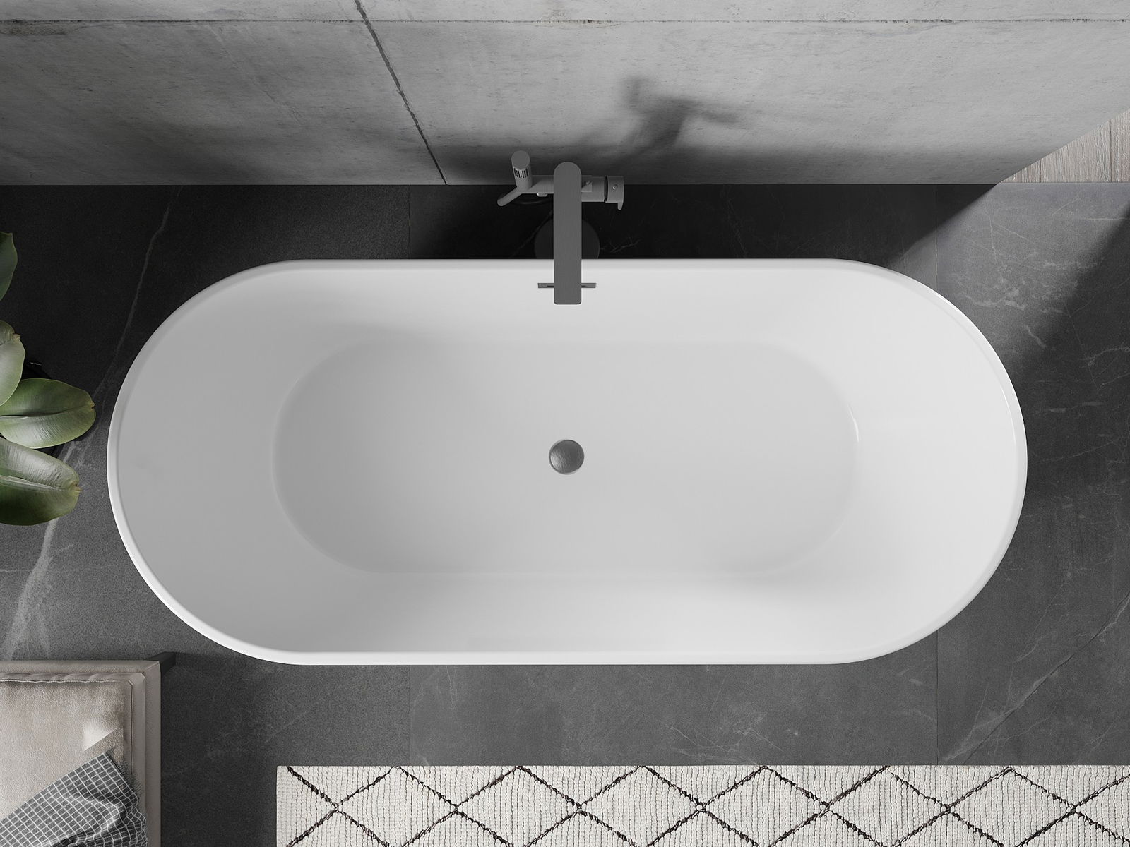Mexen Flavia cadă freestanding 160 x 75 cm, albă/neagră, preaplin gri pistola periat - 54031608075-66