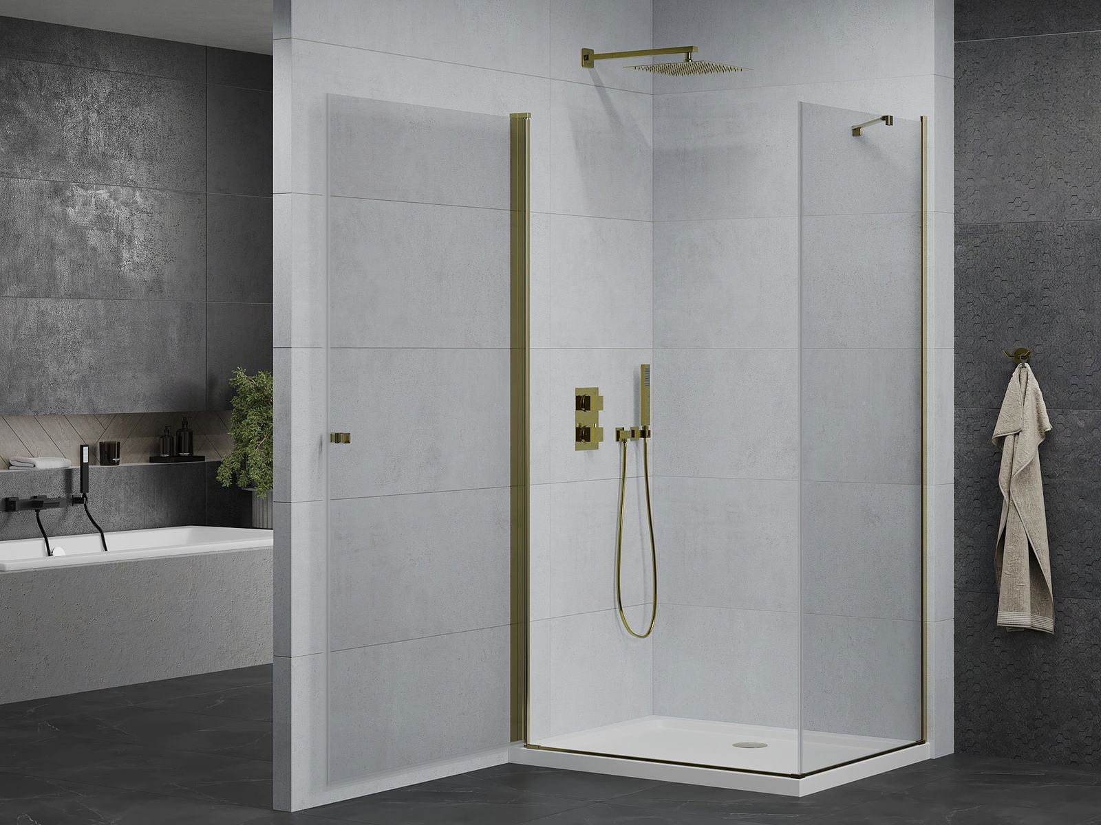 Mânerul practic și confortabil este realizat din metal durabil și rezistent. Forma modernă, combinată cu un finisaj asortat cu culoarea profilelor, conferă un aspect modern și elegant întregului, subliniind estetica fiecărei băi.