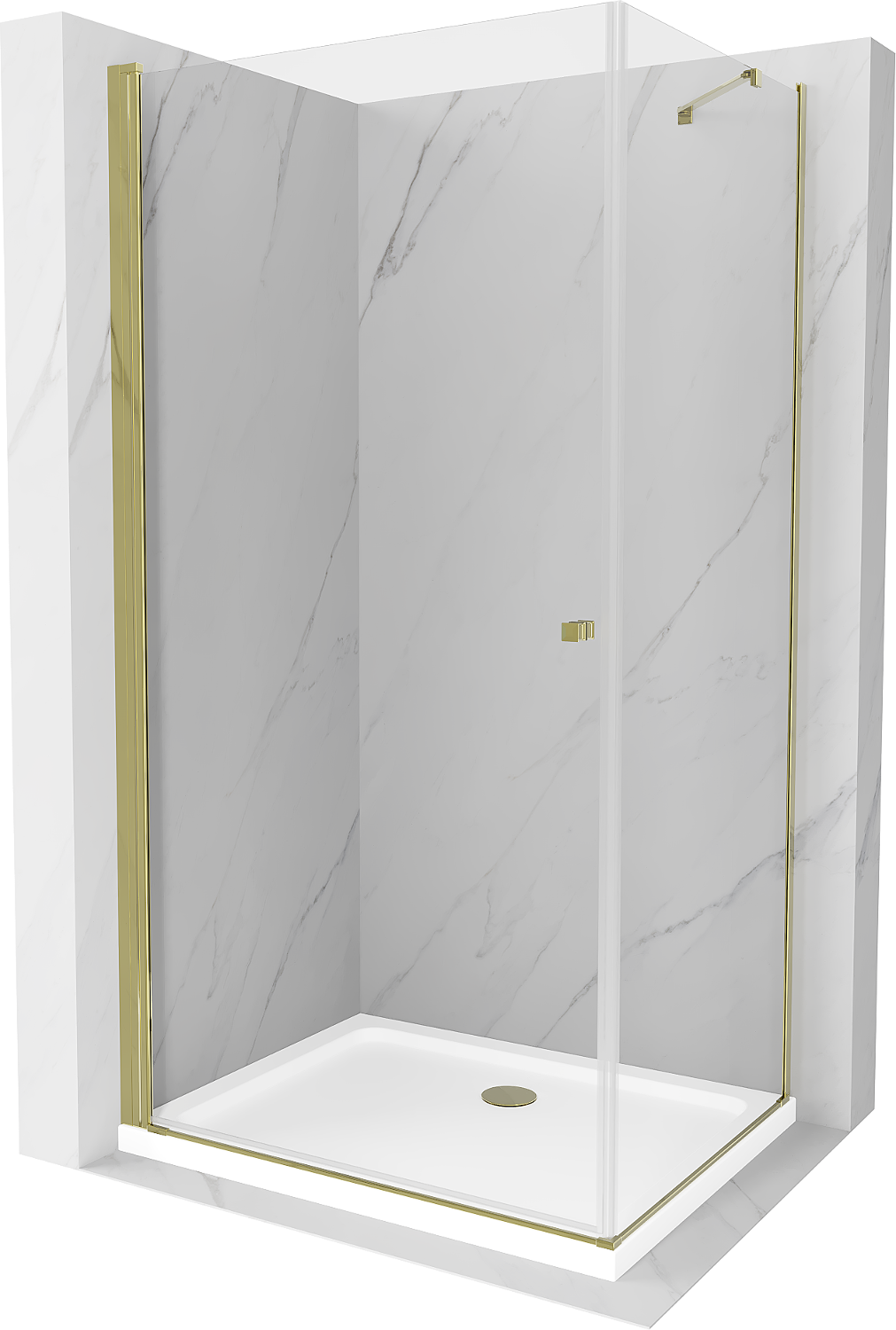 Mexen Pretoria cabină de duș pivotantă 90 x 70 cm, transparentă, aurie + cadă de duș Flat - 852-090-070-50-00-4010