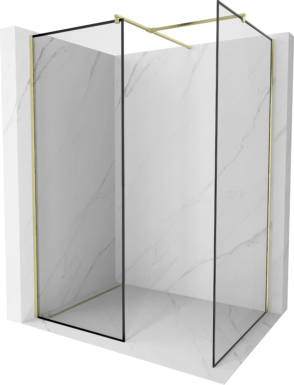 Mexen Kioto perete duș Walk-in 90 x 70 cm, ramă neagră, auriu periat - 800-090-202-55-70-070