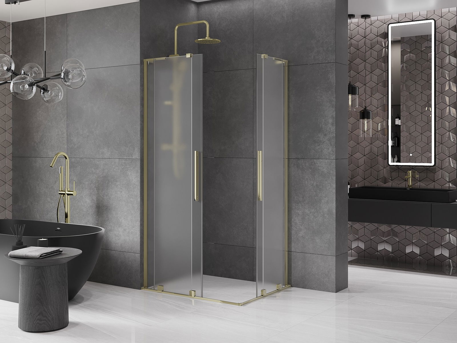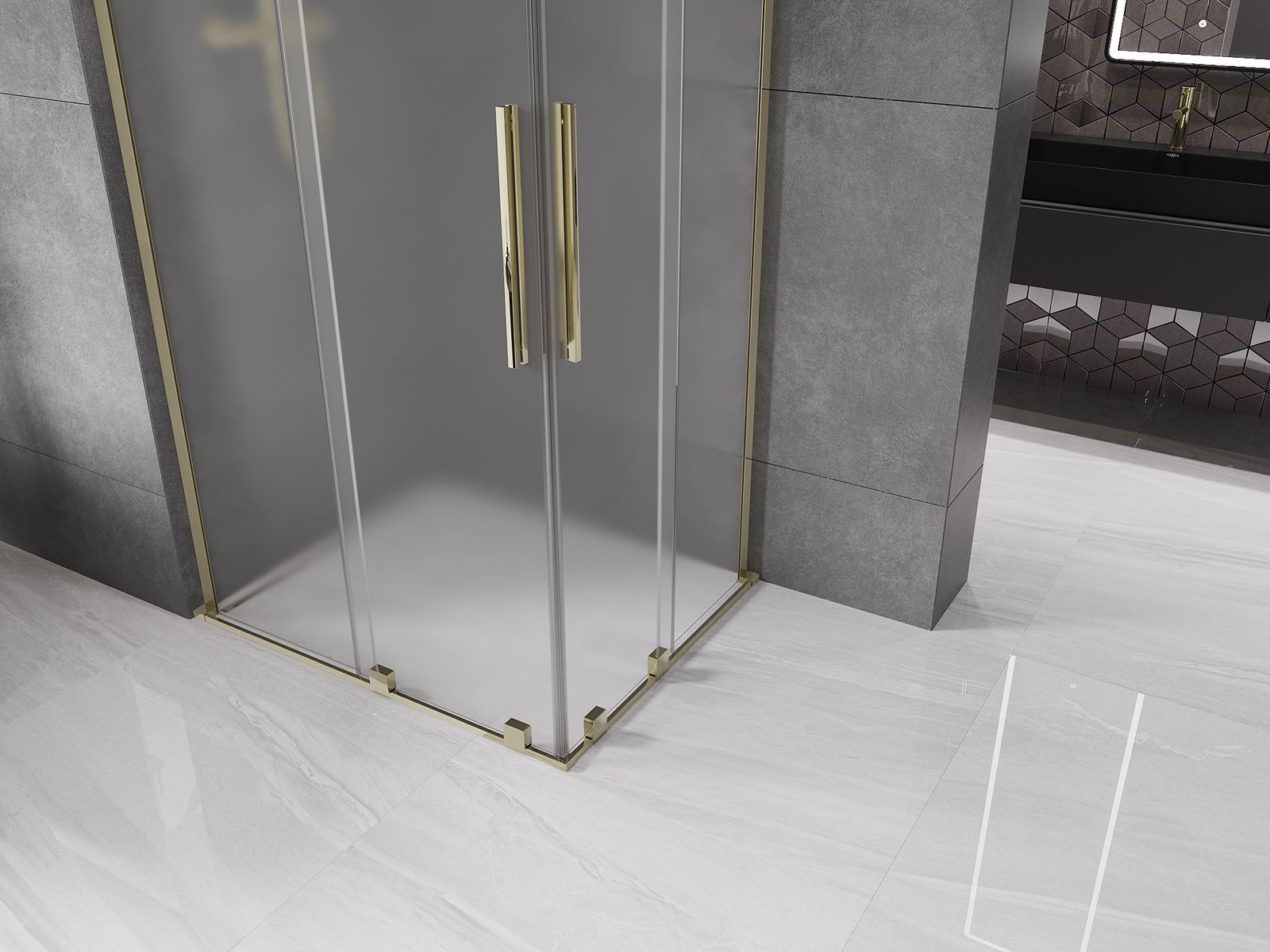 Mexen Velar L Duo cabină de duș culisantă 100 x 90 cm, înghețat, auriu - 871-100-090-02-33-50