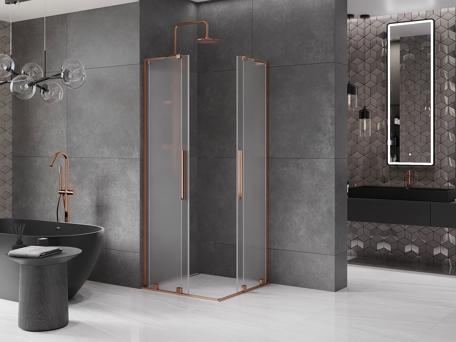 Mexen Velar L Cabină de duș Duo cu uși glisante 80 x 80 cm, satinat, aur roz - 871-080-080-02-33-60