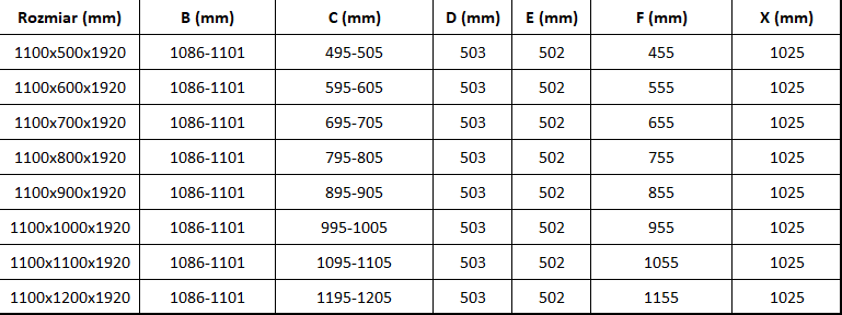 Dimensiune: 110x100 cm (uși 110 cm, perete 100 cm)