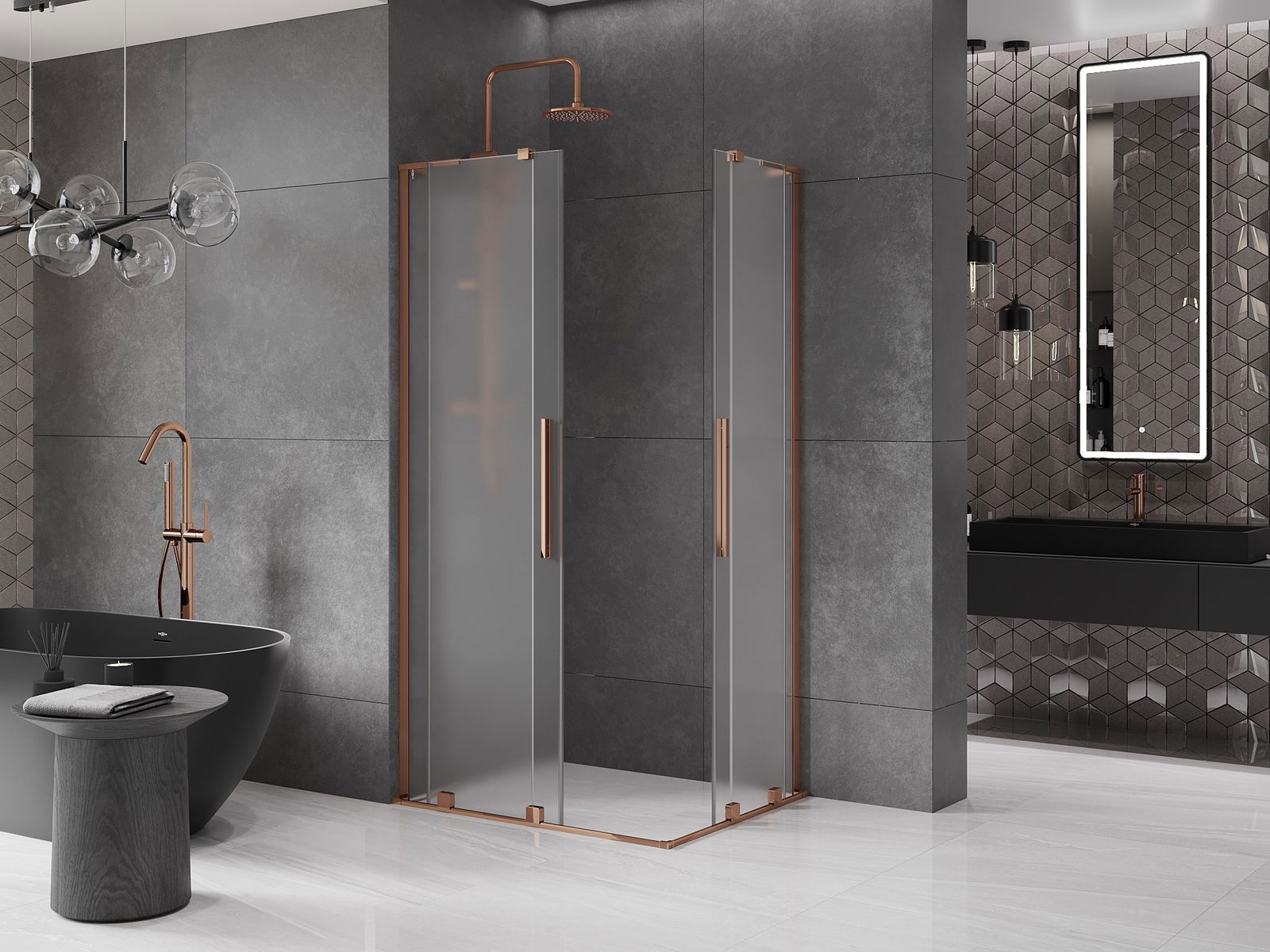 Mexen Velar L Duo cabină de duș glisantă 100 x 90 cm, înghețat, aur roz - 871-100-090-02-33-60