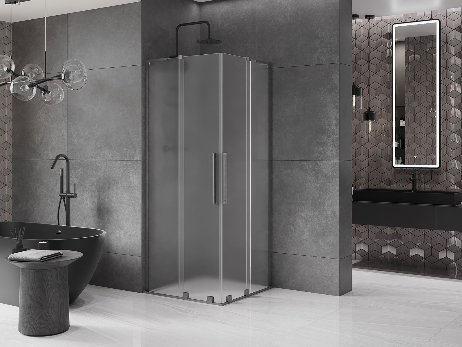 Mexen Velar L Duo cabină de duș glisantă 100 x 100 cm, înghețat, gri armat periat - 871-100-100-02-33-66