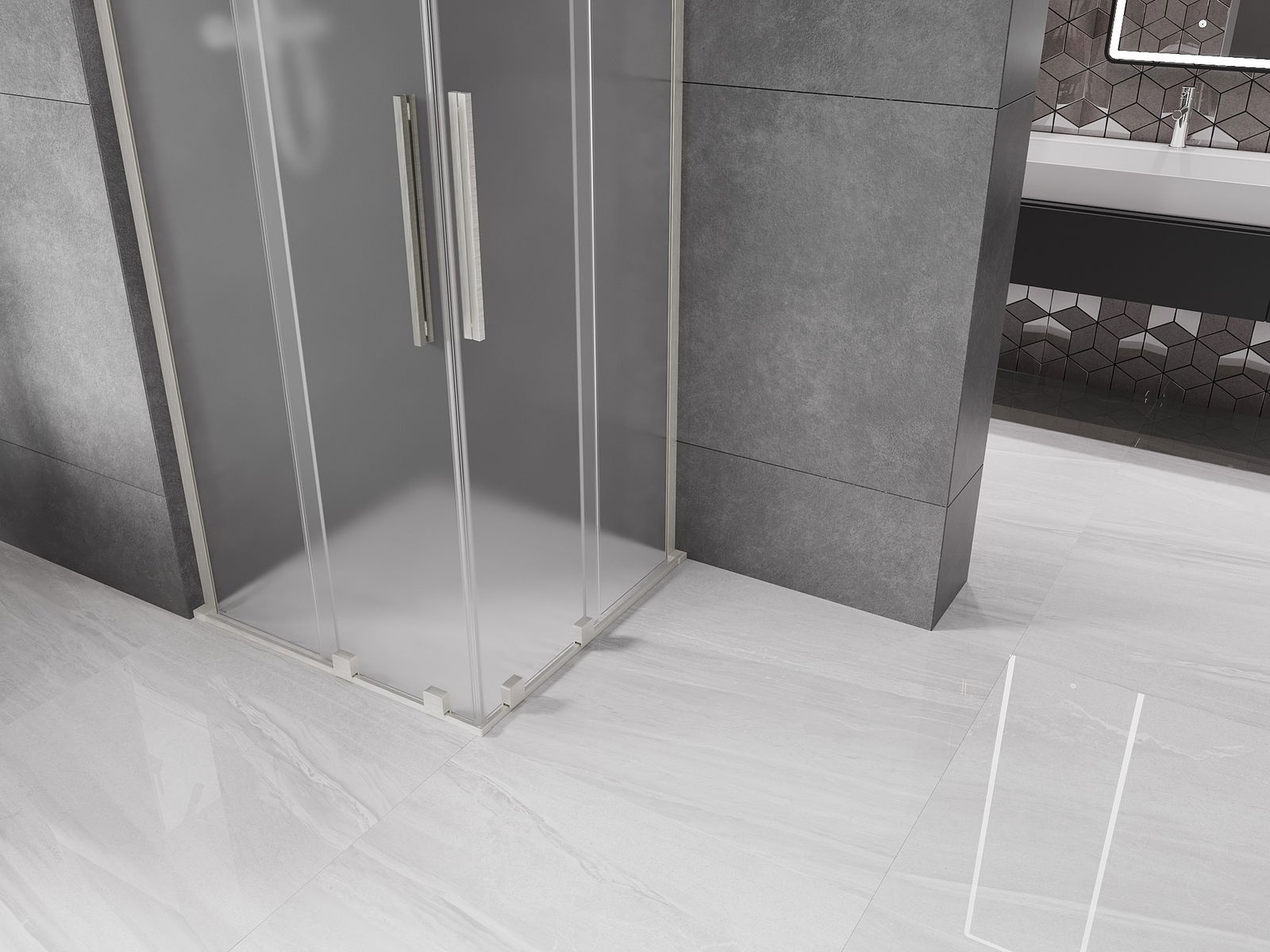 Mânerul practic și confortabil este realizat din oțel inoxidabil. Forma modernă, combinată cu un finisaj asortat cu culoarea profilelor, conferă ansamblului un aspect modern și elegant, subliniind estetica fiecărei băi.