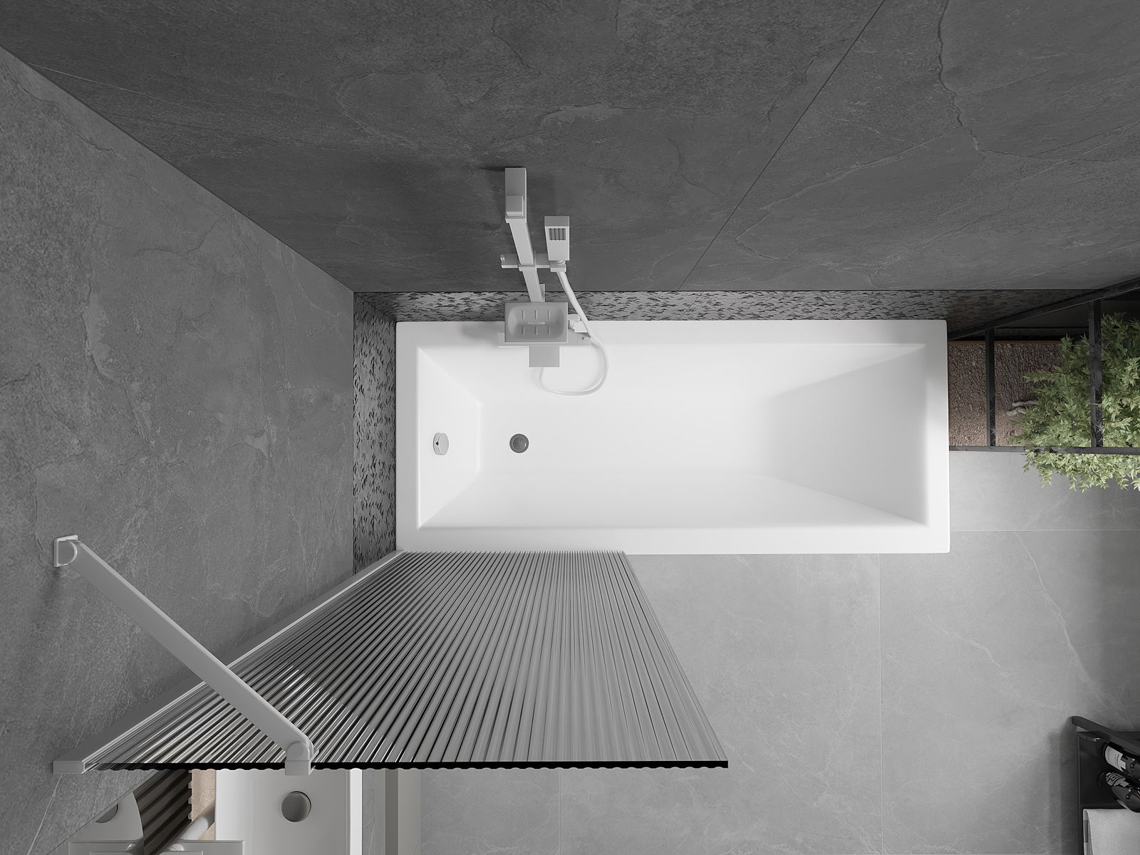 O protecție eficientă împotriva vărsării apei în timpul băii. Paravanul are garnituri care se potrivesc perfect cu suprafața de sticlă și marginea căzii. O soluție funcțională care asigură siguranță și întreținere ușoară a curățeniei.