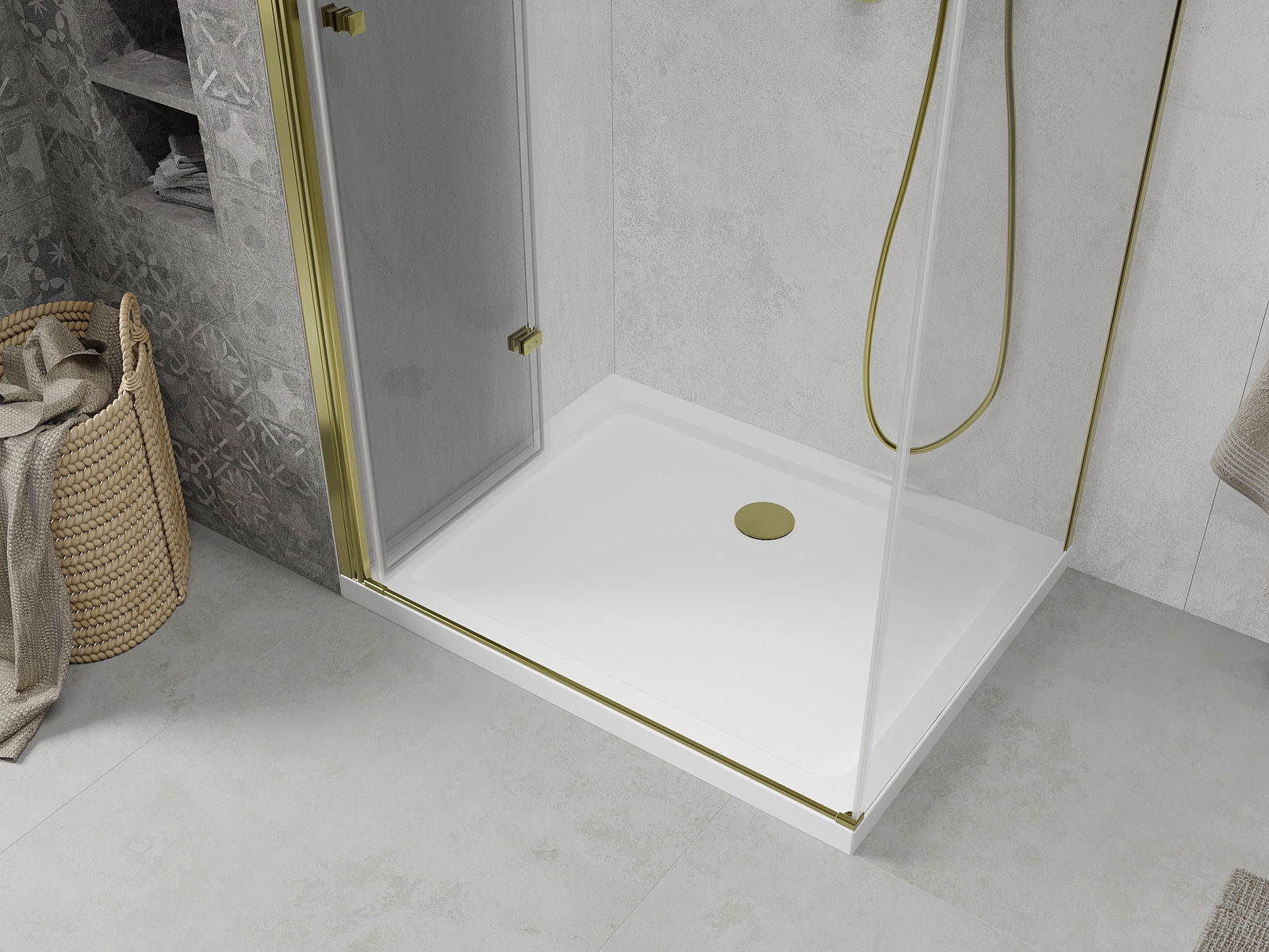 Mexen Lima cabină de duș pliabilă 90 x 70 cm, transparentă, aurie + cădiță Flat - 856-090-070-50-00-4010