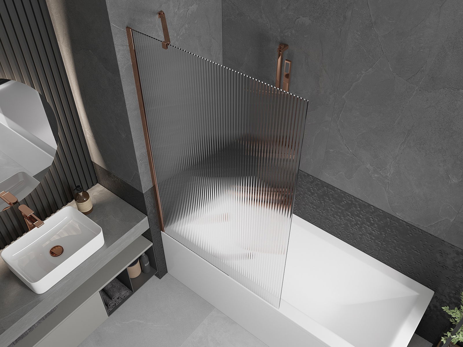 Mexen Next paravan de cadă cu 1 panou 100 x 150 cm, dungi, aur roz - 895-100-000-00-09-60