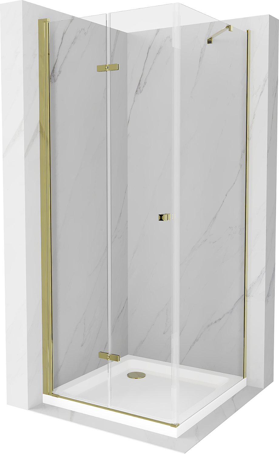 Cabină de duș pliabilă Mexen Lima 100 x 100 cm, transparentă, aurie + cădiță Flat - 856-100-100-50-00-4010