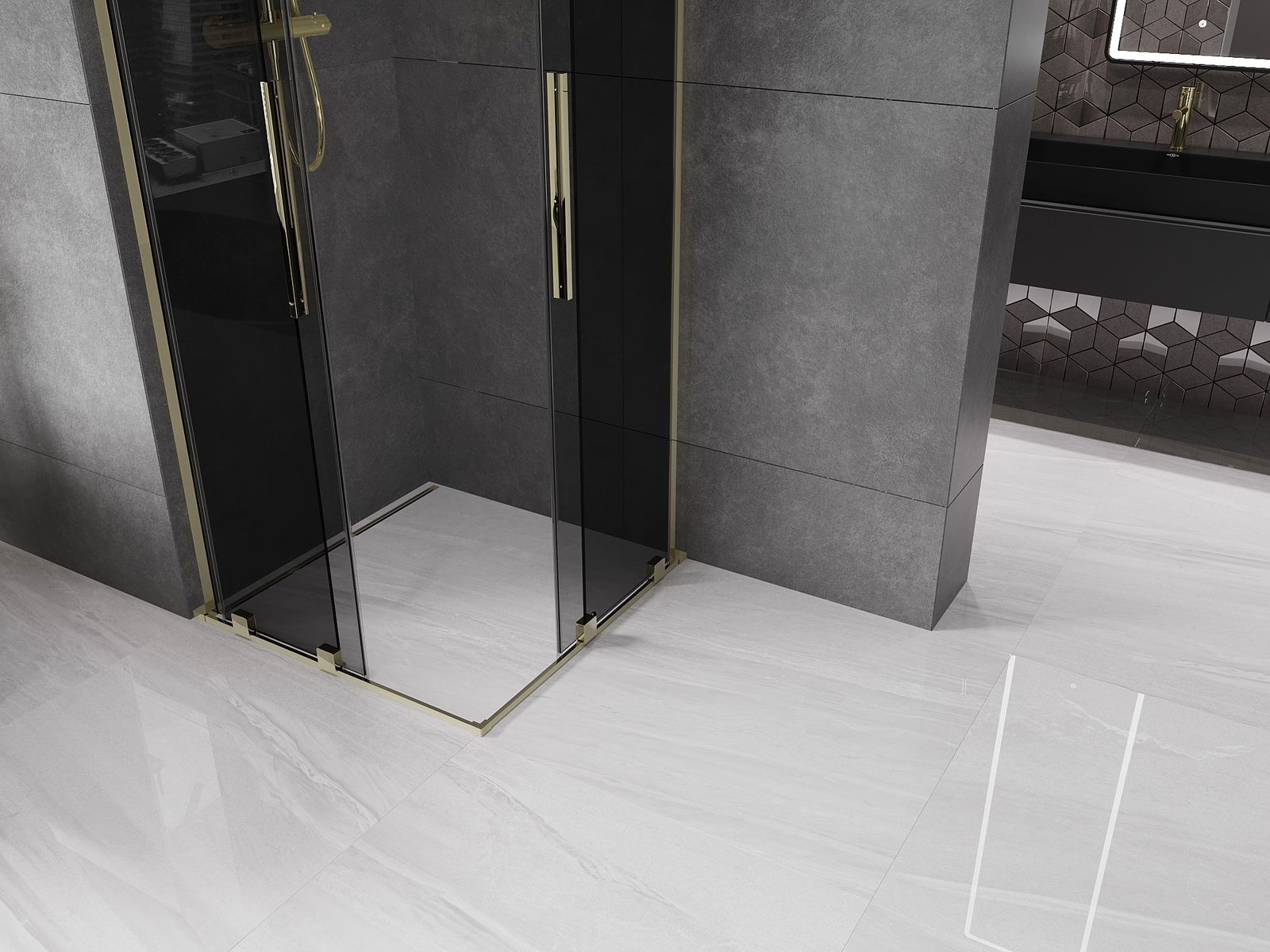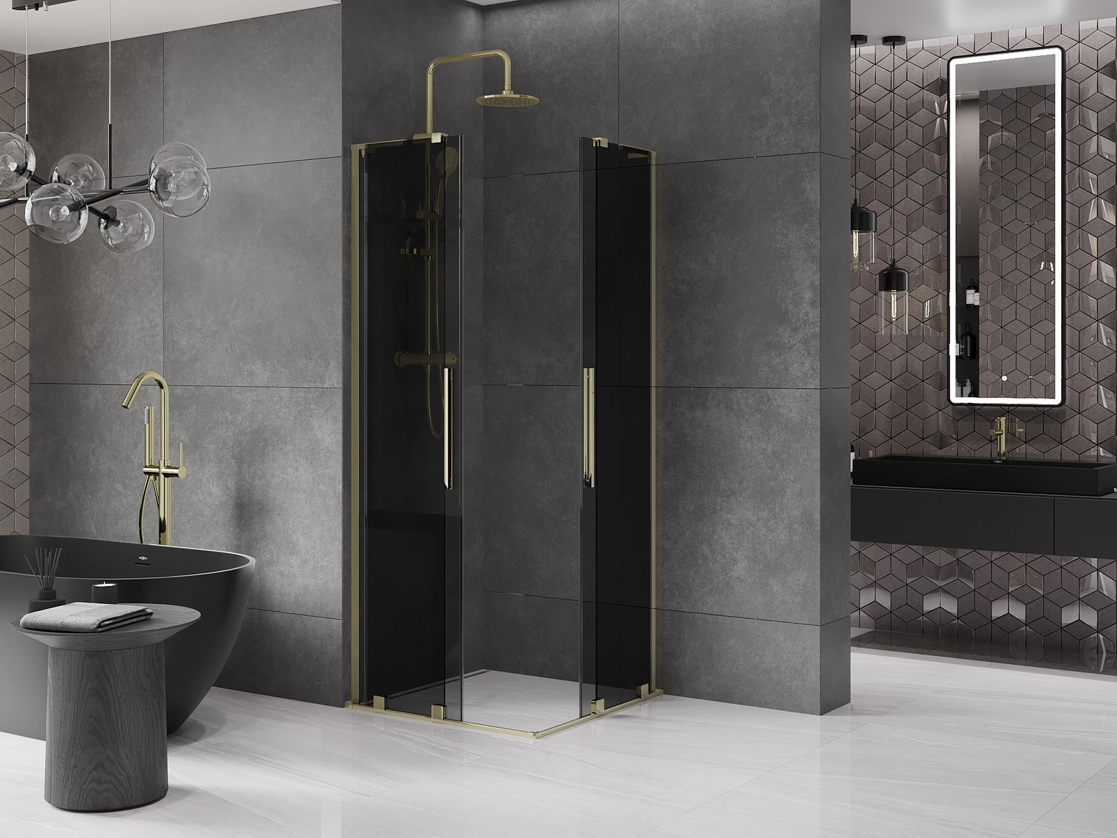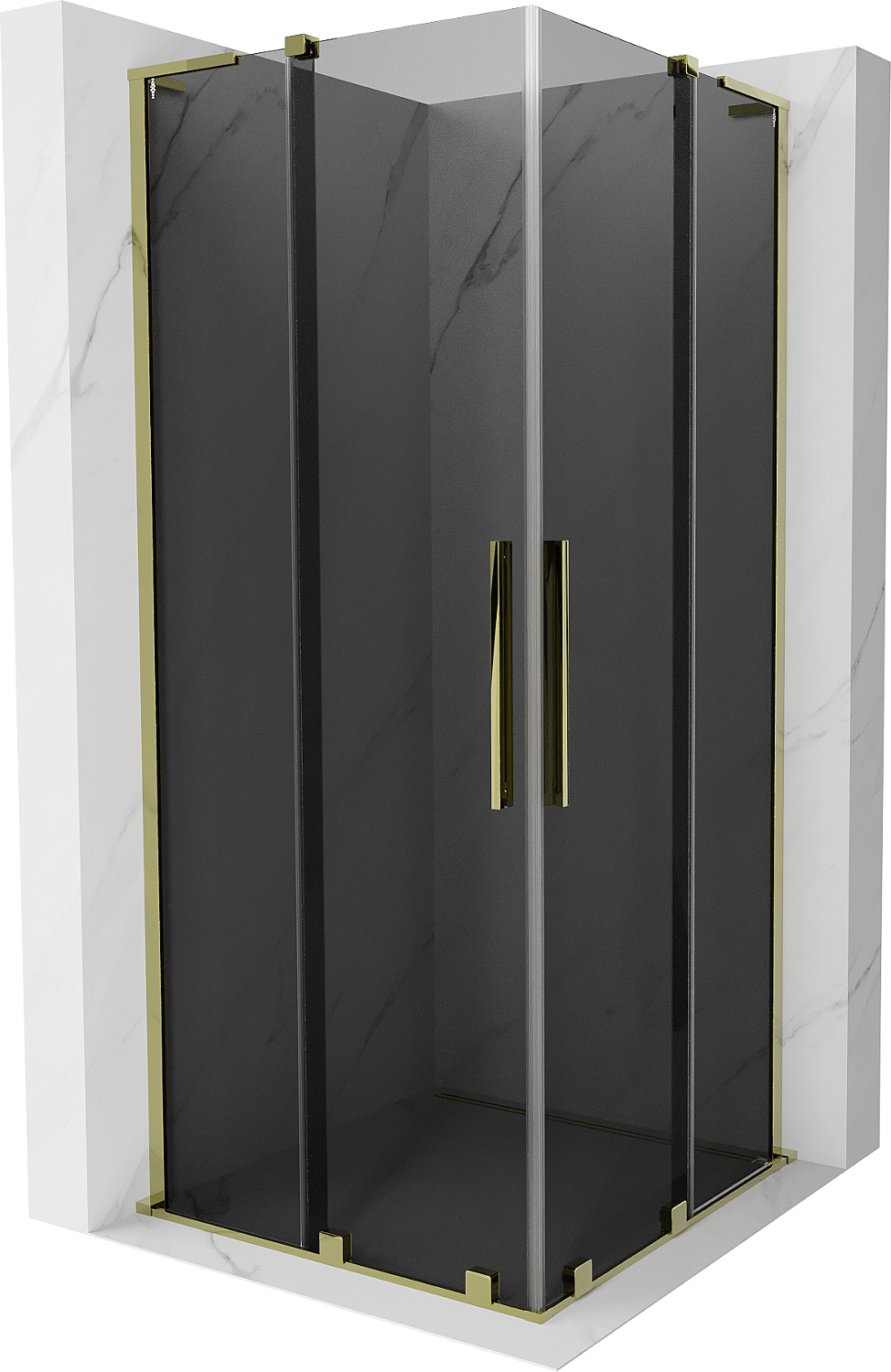 Mexen Velar L Cabină de duș Duo glisantă 100 x 100 cm, grafit, auriu - 871-100-100-02-43-50