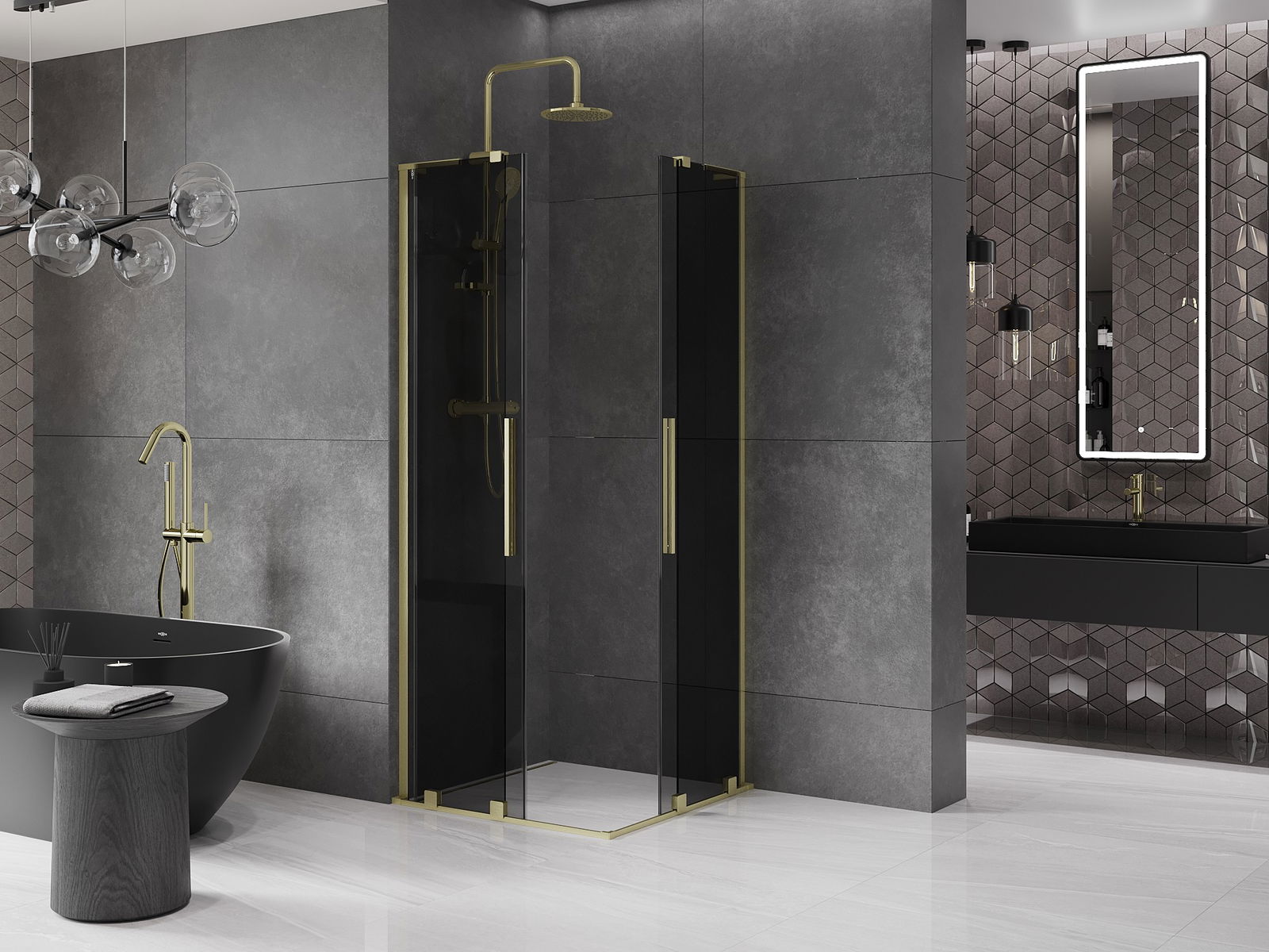 Mexen Velar L Duo cabină de duș glisantă 80 x 80 cm, grafit, aur periat - 871-080-080-02-43-55