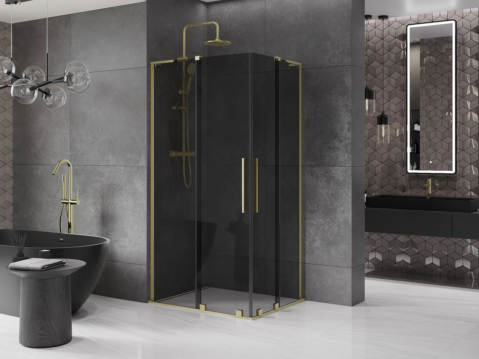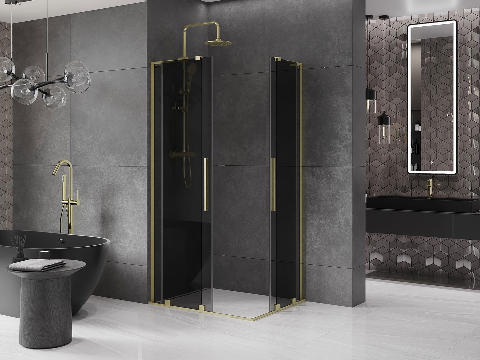 Mexen Velar L Duo cabină de duș culisantă 90 x 80 cm, grafit, auriu periat - 871-090-080-02-43-55