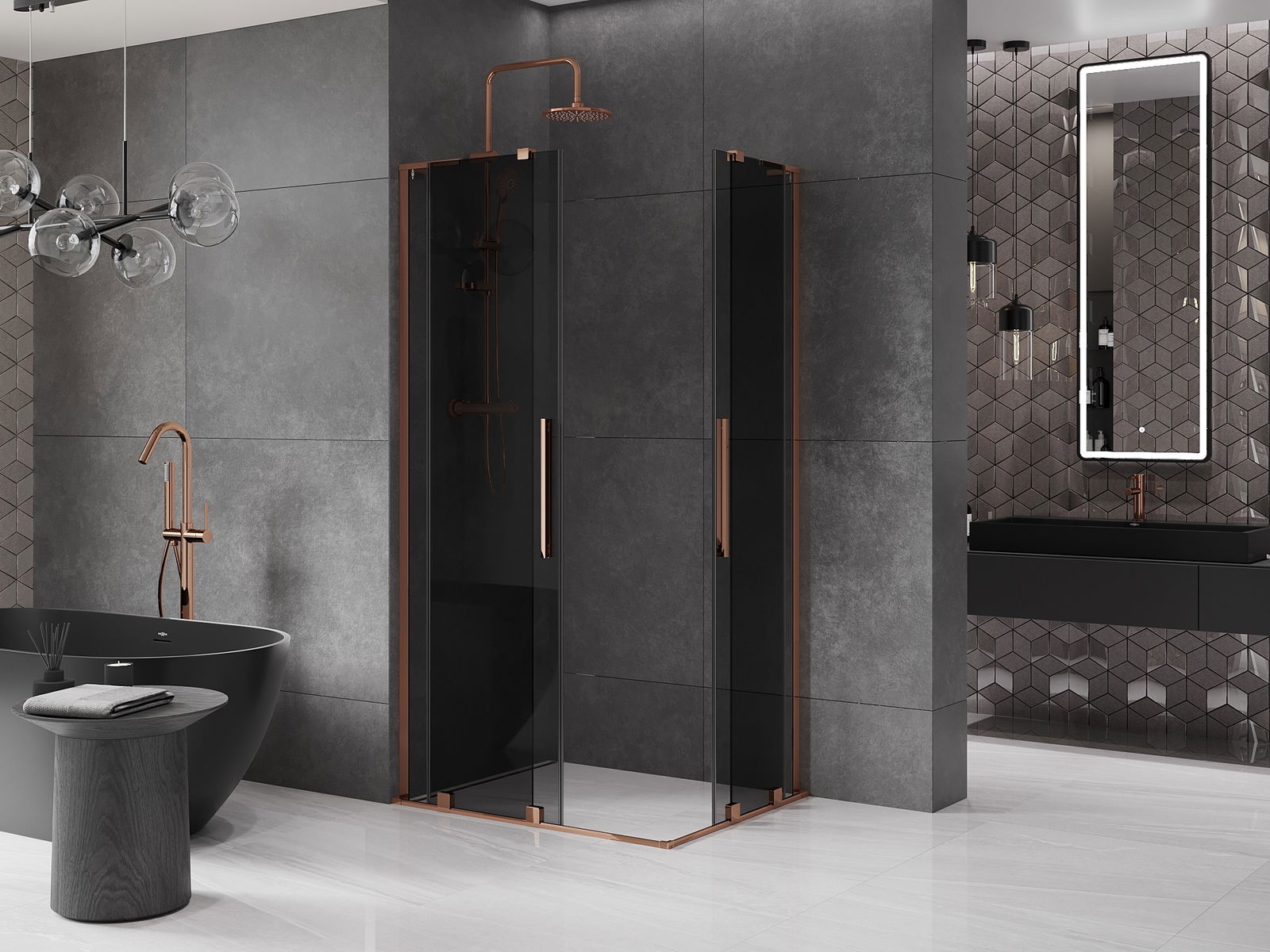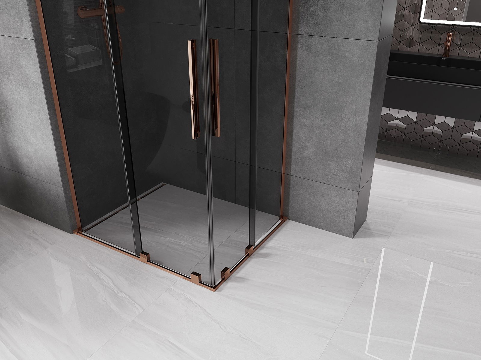 Mexen Velar L Cabină de duș duo glisantă 90 x 80 cm, grafit, aur roz - 871-090-080-02-43-60